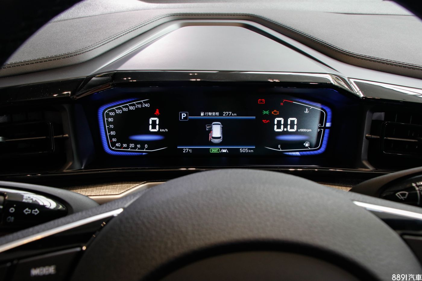 數位儀錶左側為時速,右側有轉速、油溫、水溫等訊息,中央則可顯示如車輛基本資訊、主動安全等。