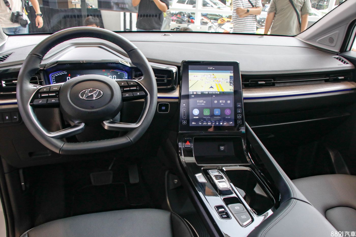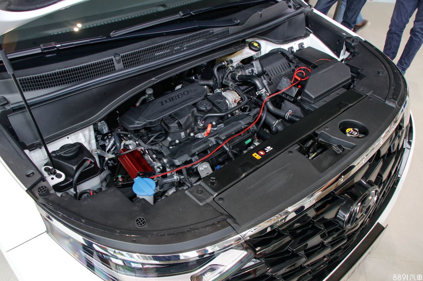 Custin車頭水箱護罩造型與新世代Tucson有著異曲同工之妙,採用如鱗片般的元素,連結輪廓銳利的LED頭燈組,LED日行燈就內嵌在水箱罩兩側,前保桿設計也使其沒有一般MPV給人較為古板無趣的形象,跟「大哥」Staria的未來感相比,Custin面容更顯華麗。