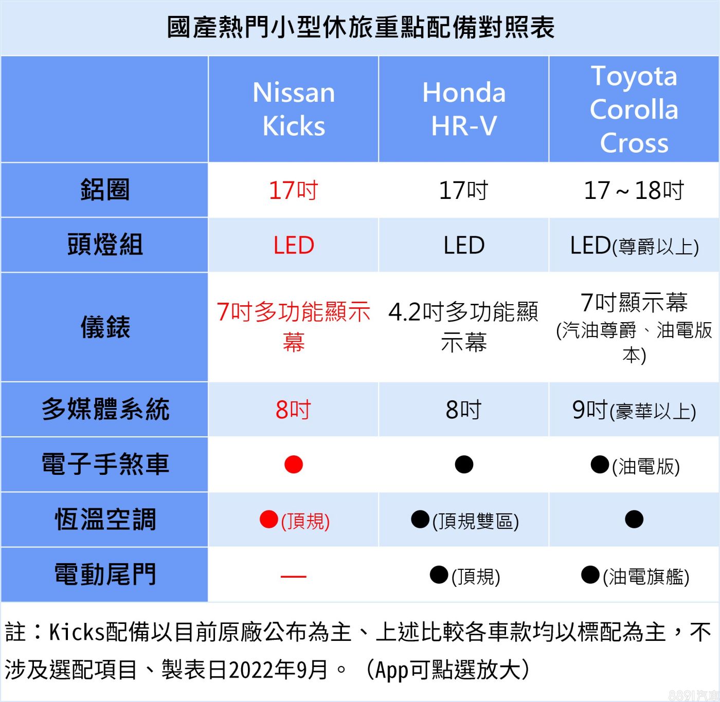 定位為小型休旅的Nissan小改款Kicks登場,你說能不和同級銷售王Toyota Corolla Cross、叫好也叫座的Honda HR-V來個戰前叫陣嗎?