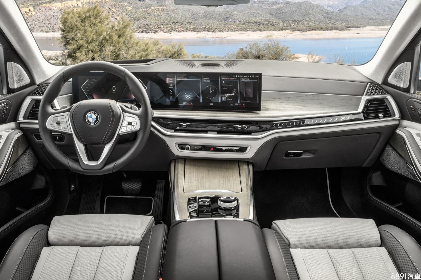 小改款X7車室導入了首見於iX、採相連式曲面設計、由12.3吋數位儀錶、14.9吋中控螢幕架構而成的2具寬幅螢幕,並搭載BMW Operating System 8多媒體介面,空調介面亦獲得更新,並有X7專屬氛圍燈配置於副駕駛座前方,前座出風口新設計看起來也增添些許華麗感,而中央鞍座的iDrive操作介面使用水晶套件,奢華感十足。
