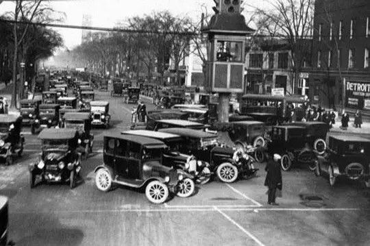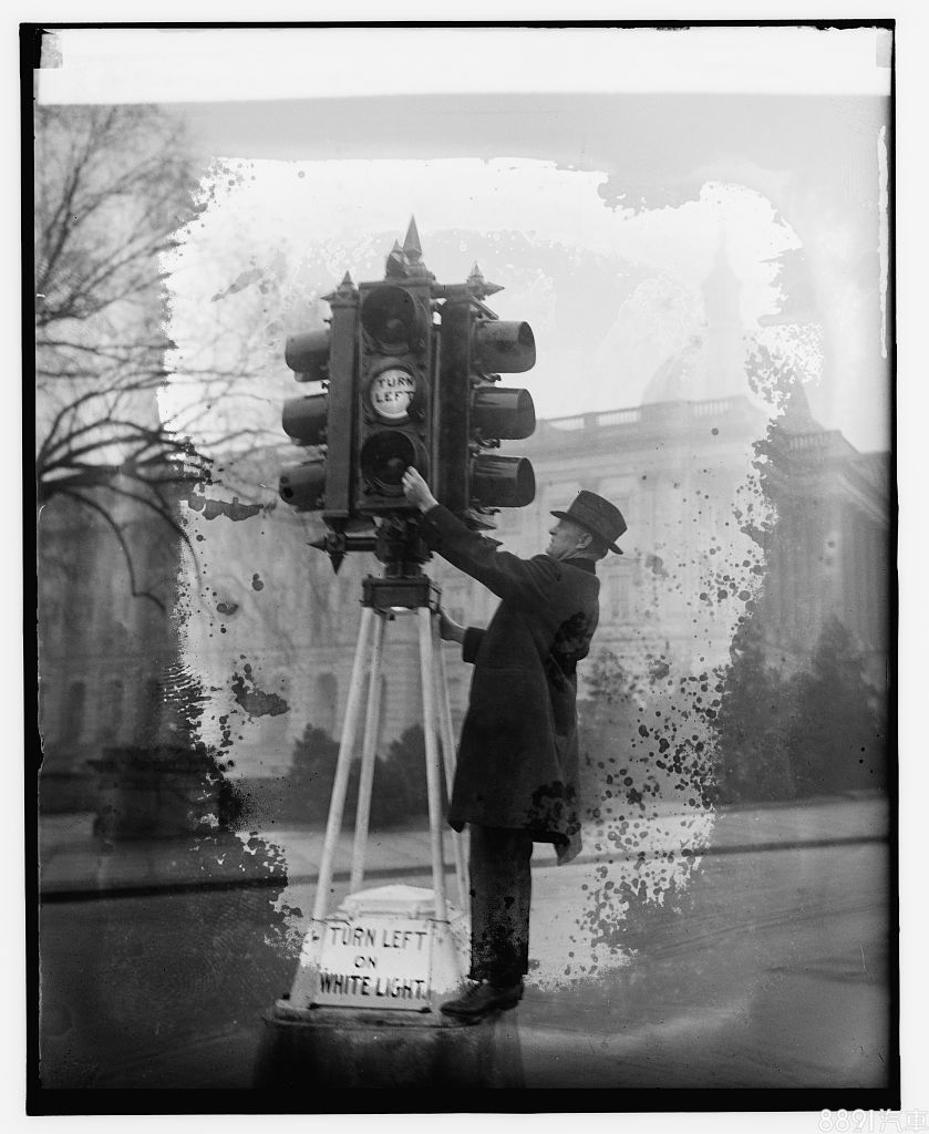 我想,你一定很好奇!那為何現在常見的紅綠燈會加入「黃燈」呢?這得追溯到1920年,密西根州底特律一名員警William Potts發明了第一座三色信號燈,在原有的紅燈、綠燈之外,再加入了琥珀色黃燈,而原因就出自他當時擔心員警無法同時控制四個方向的信號燈,因此額外加入黃燈來作為紅、綠燈變換之間的緩衝。(圖/Libary of Congress)