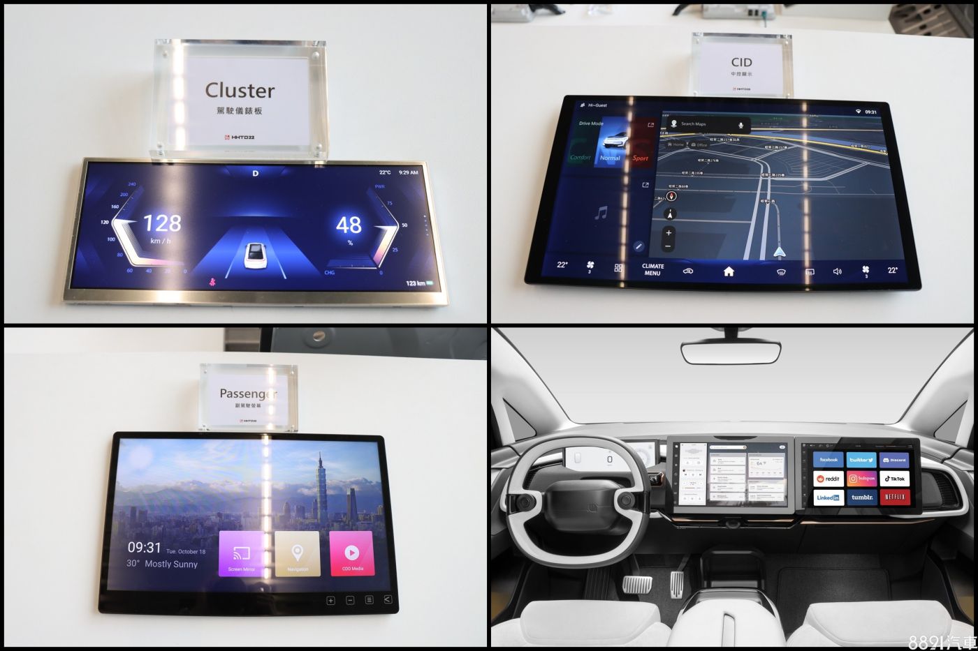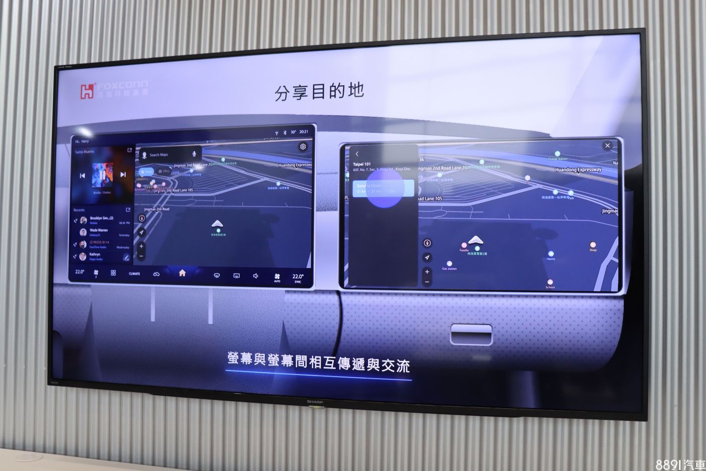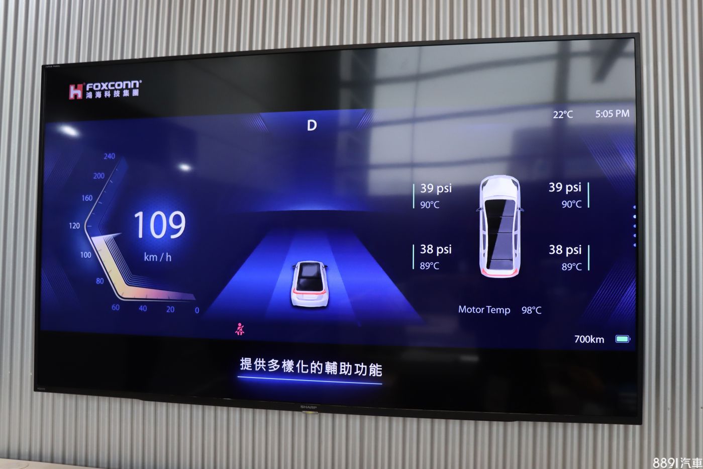 做為現場展出亮點,鴻海公布了數位儀錶、觸控多媒體螢幕和副駕駛座觸控螢幕模組,預告未來MIH平台量產車,可支援最多三螢幕的儀錶台設計。此外,藉著其3C領域的技術與經驗,鴻海未來也將涉足電動車電能管理系統之開發。