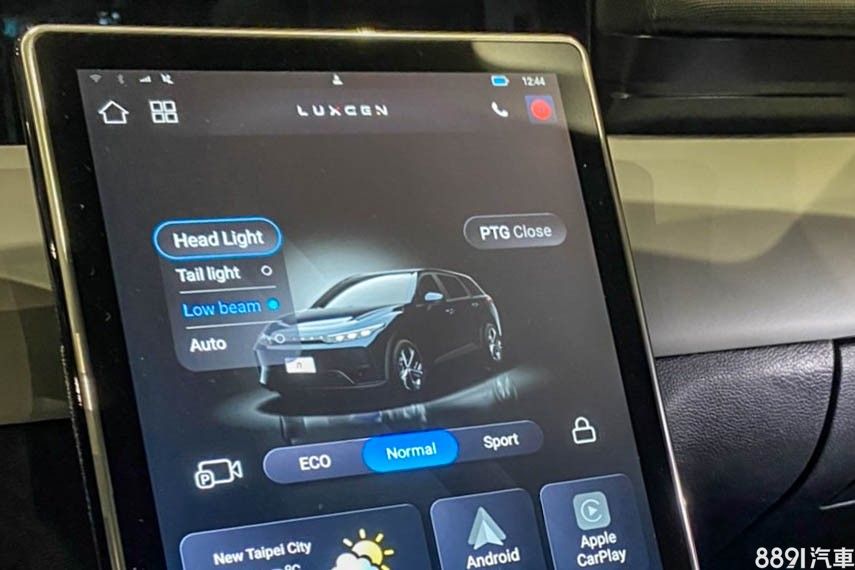 中控觸控螢幕除了基本的空調、音響等系統外,停車顯影輔助、頭燈啟閉和駕駛模式選擇等功能也都結合在面板內,並可見支援Android Auto和Apple CarPlay連結。雖說展示車款採英文顯示介面,但未來上市版將具備中文介面。