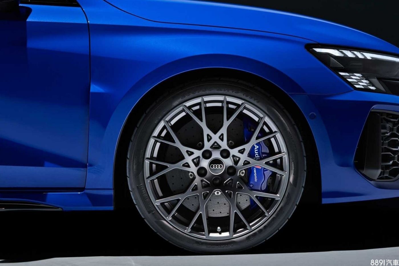 性能版RS 3也將過往需選配的倍耐力P Zero Trofeo R半熱熔跑胎,與六活塞陶瓷前碟盤列為標配,以應付更強大的動力輸出,19吋鋁圈也換上專屬樣式,內部的藍色卡鉗則與標準款紅色塗裝做出區別。