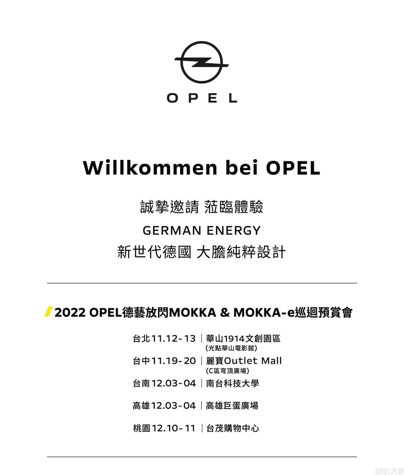 定位為小型休旅的Mokka,在台確定推出汽油與純電版本,原廠公布將於11/12起,在台北、台中、台南、高雄與桃園等地,展開針對消費者的巡迴預賞,可先至Opel Taiwan官網預約,只要留下相關連絡資訊,後續將會安排專人聯繫並提供專屬服務,不僅能享受到舒適的賞車體驗,還有機會獲得限量Opel品牌好禮。