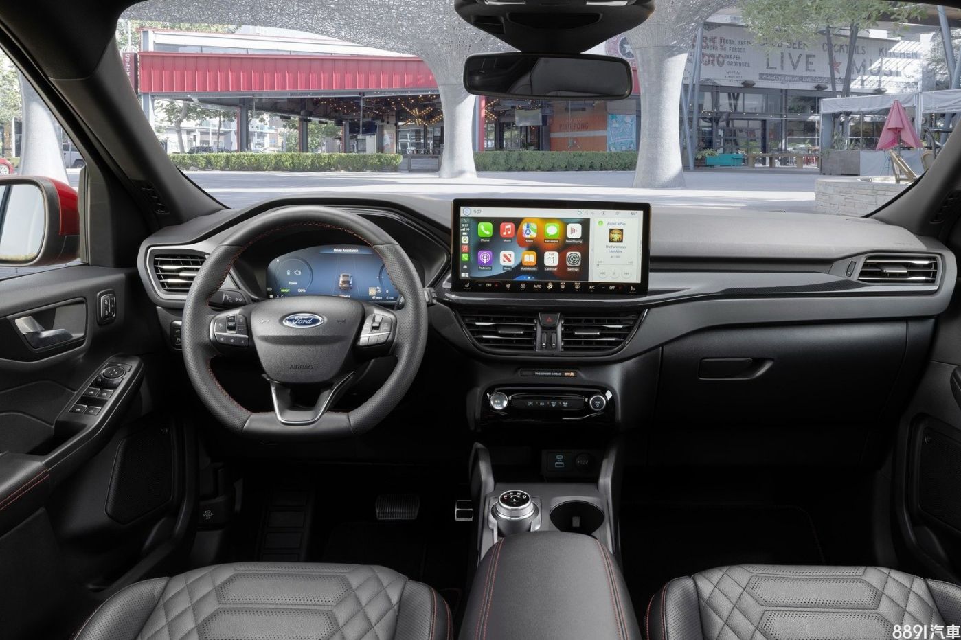 車室大致沿襲既有格局,但換上13.2吋觸控式SYNC 4多媒體系統,並將空調介面整合於螢幕下方,先前空調位置則改置引擎啟閉鍵、音量旋鈕及駕駛模式切換等按鍵。ST-Line版本(如圖)獨有平底方向盤、紅色車縫線、金屬踏板等呼應外觀運動氛圍。