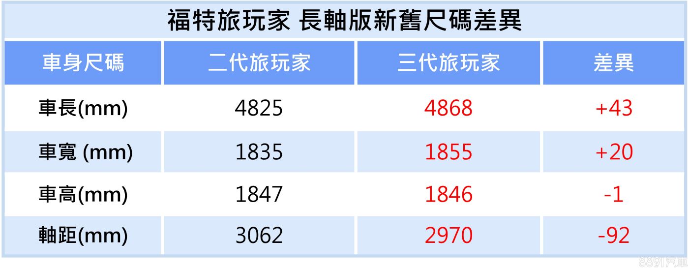 改款後的旅玩家,依舊提供短軸及長軸兩種車型,以國內先前引進的長軸版來看,車長及車寬分別加長43mm與20mm,重心更往車身四周分散,軸距也因底盤改採與Caddy Maxi相同的平台,較前代縮短了92mm。