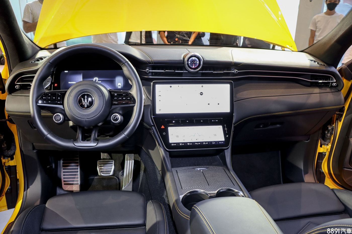 除了導入MC20上設計元素的風格外觀,Grecale車室格局在目前品牌車系中算是「自成一格」,除了12.3吋數位儀錶,Grecale以2具觸控式螢幕(上方12.3吋、下方8.8吋)整合多媒體系統與空調介面,極富科技感。