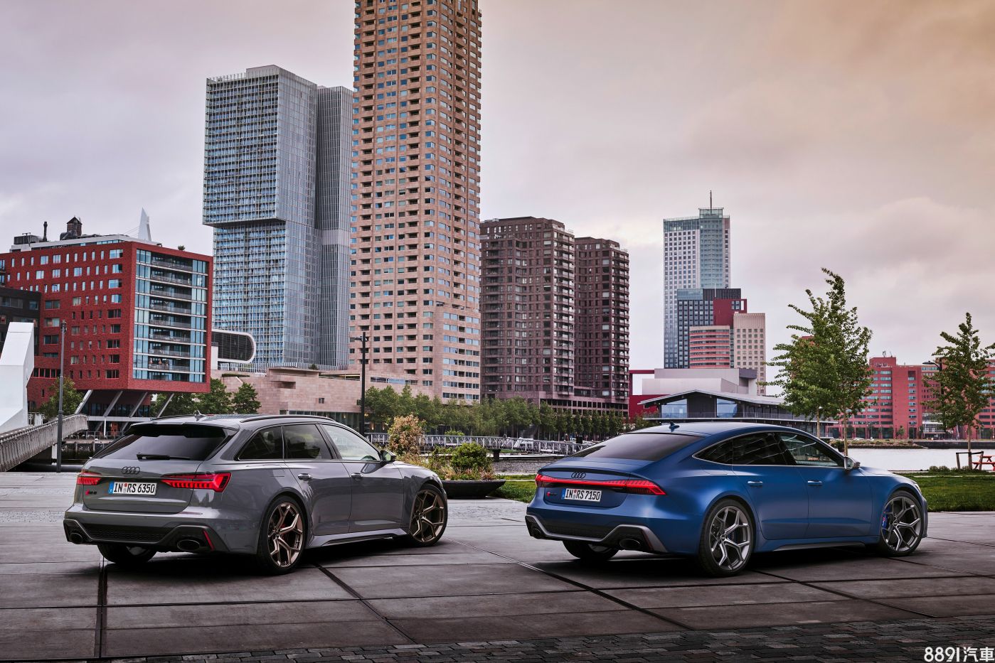 為了和標準款區隔,兩款Performance車型在外型設計上,於保桿下緣飾板、後視鏡蓋、車頂行李架和窗框皆採消光灰處理,另外新增消光藍和消光灰藍雙色可選,讓RS 6和RS 7的可選車色增加至16色。