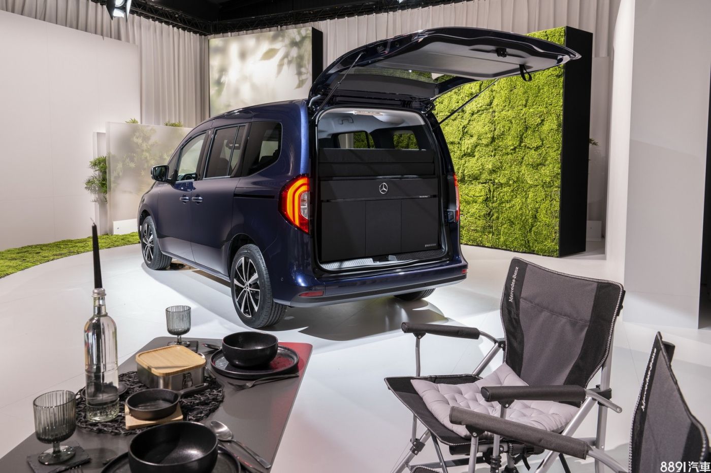 Concept EQT Marco Polo是以長軸版EQT為基礎所打造的露營車款,採用與V-Class Marco Polo相同的可掀式車頂,且概念車還於車頂配置了太陽能充電板,可為新車進行充電,也搭載後窗遮光系統,只需一個按鍵,就能為窗戶提供隱私效果。