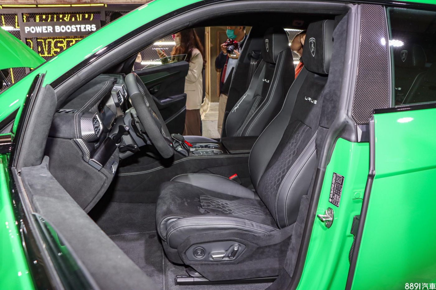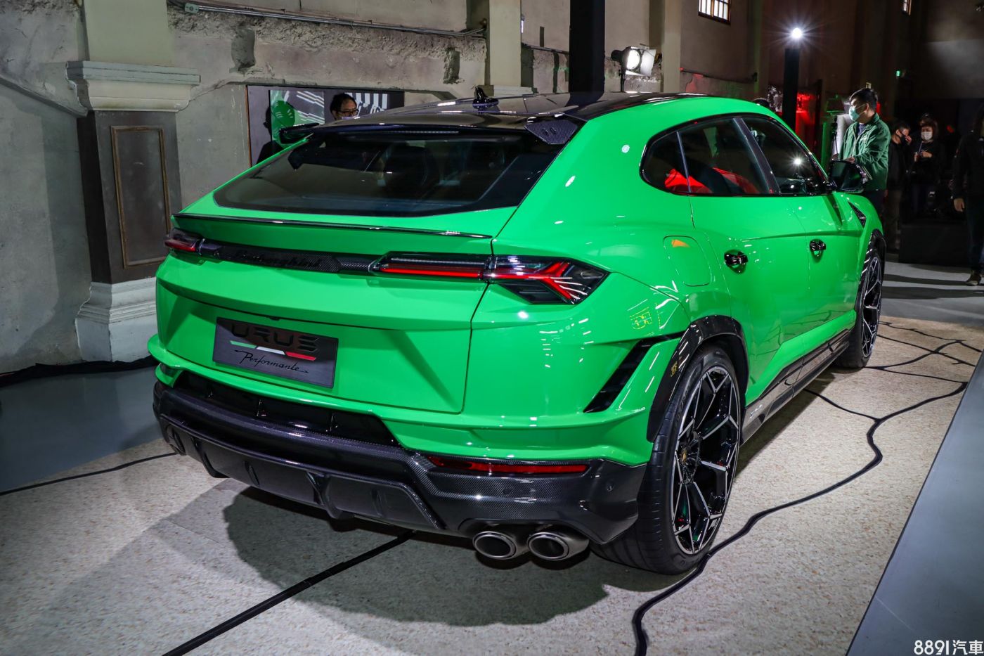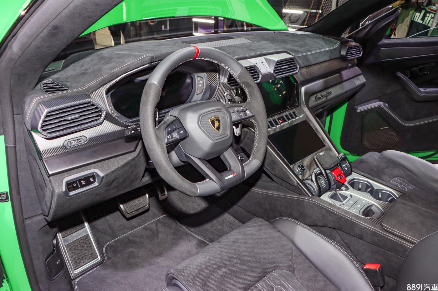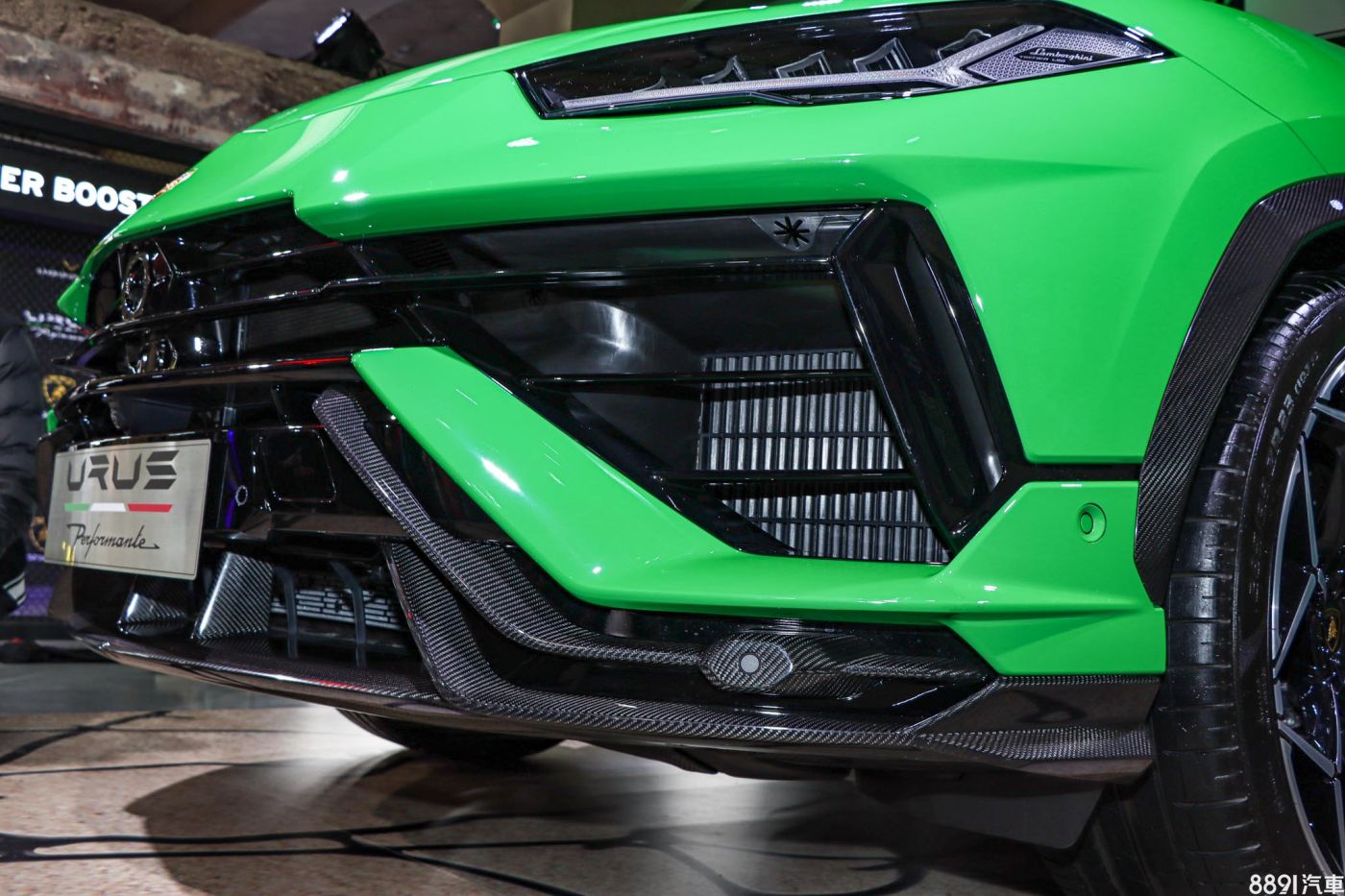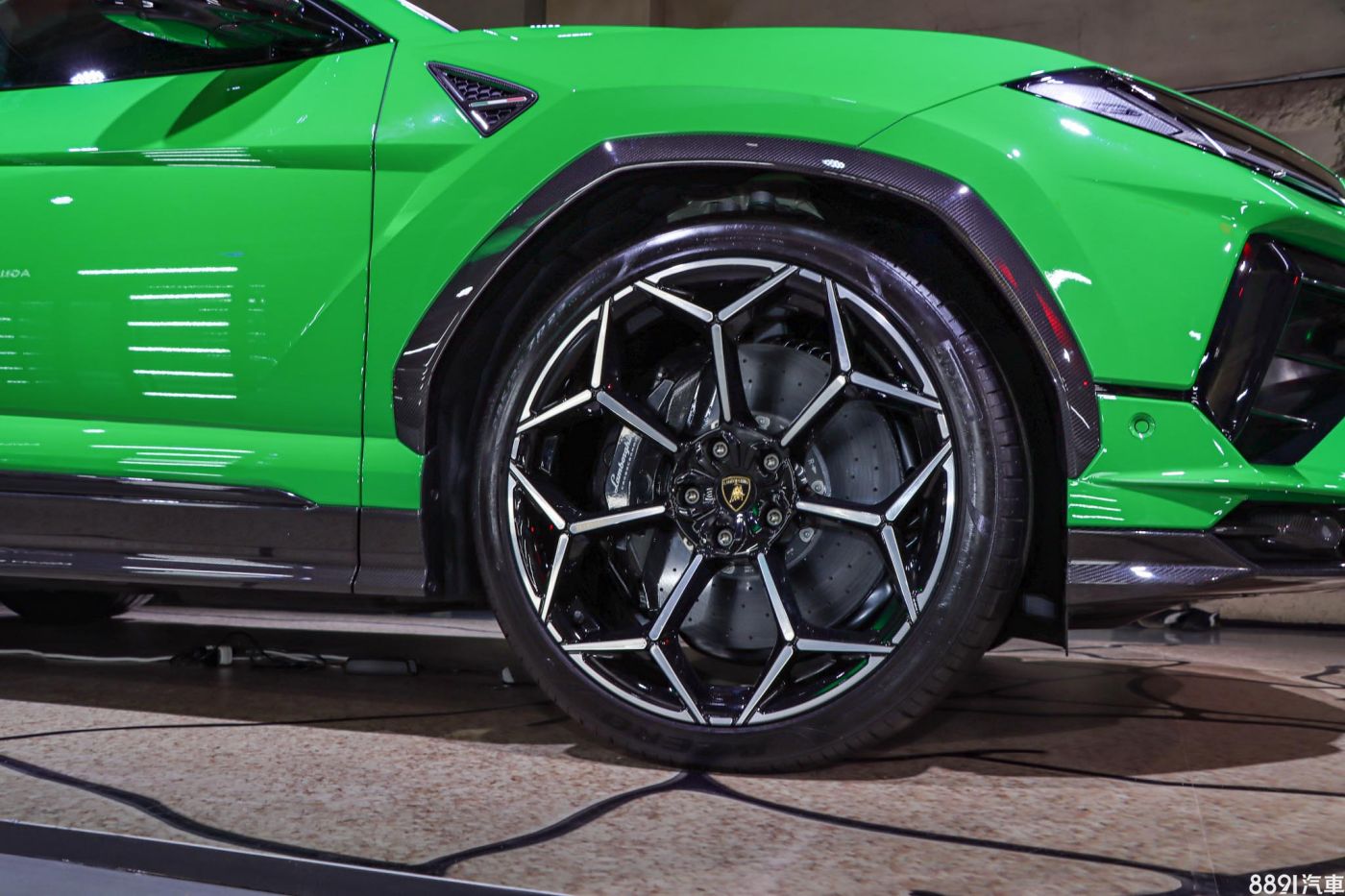 展示車搭載23吋輕量化鍛造鋁圈、碳纖維煞車碟盤,以及黑色煞車卡鉗,造型張力十足,搭配前285/35R23、後325/30R23的倍耐力P Zero跑胎。