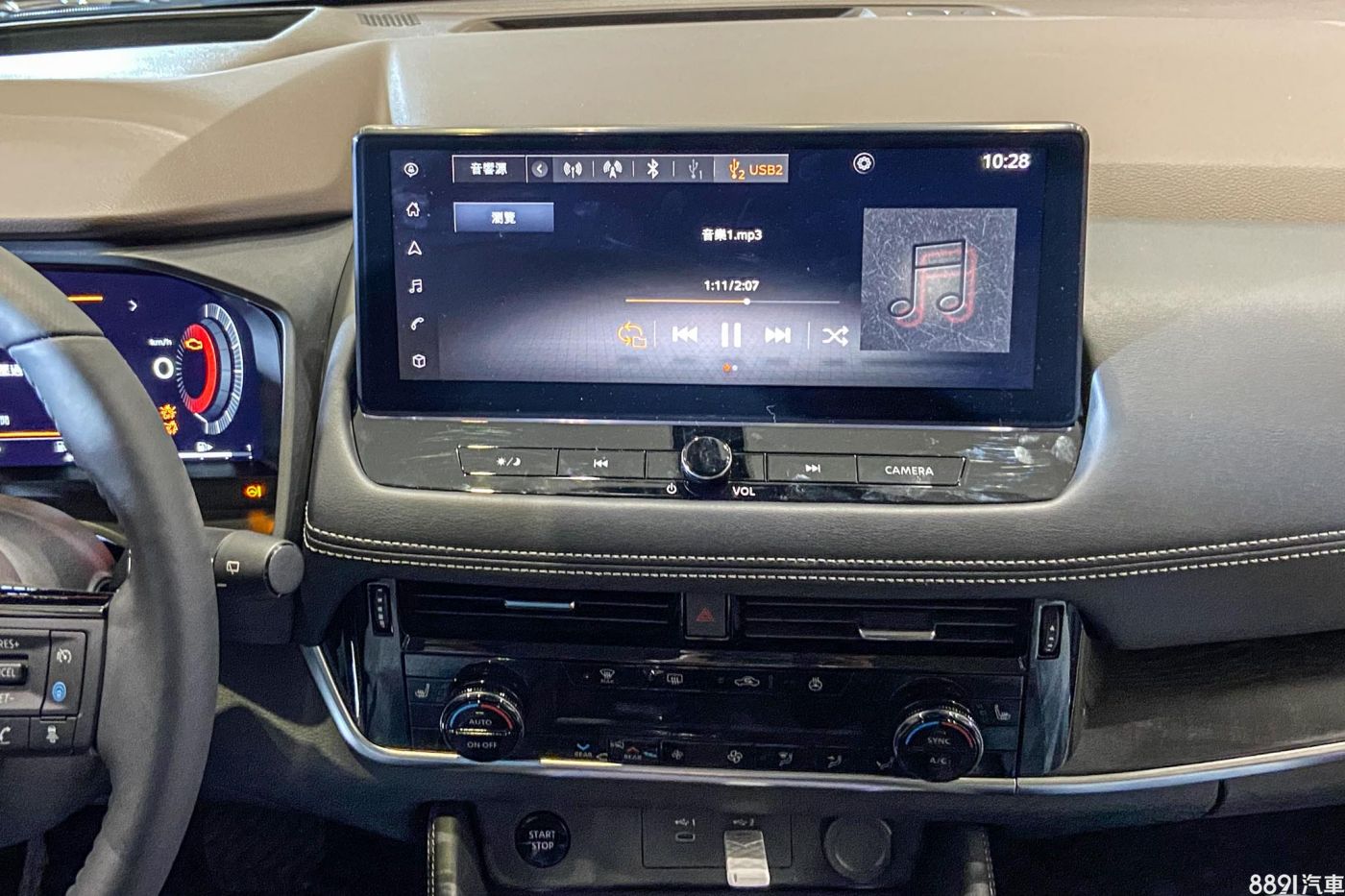 12.3吋觸控螢幕左側為主要按鍵,下方則為音量調整,主頁採用分割畫面,畫質清晰、操作上還算順手,內建原廠導航、360度環景影像,不過僅Apple CarPlay具備無線功能,Android Auto仍為有線連接。