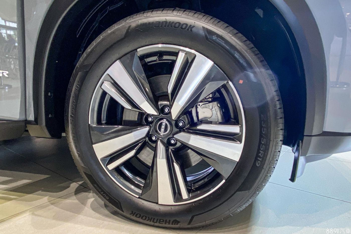 e-Power版腳踩19吋鋁圈,五輻雙色的造型簡單耐看,展示款配胎為235/55R19的韓泰Ventus S1 evo3 SUV,是一款標準的休旅用胎。