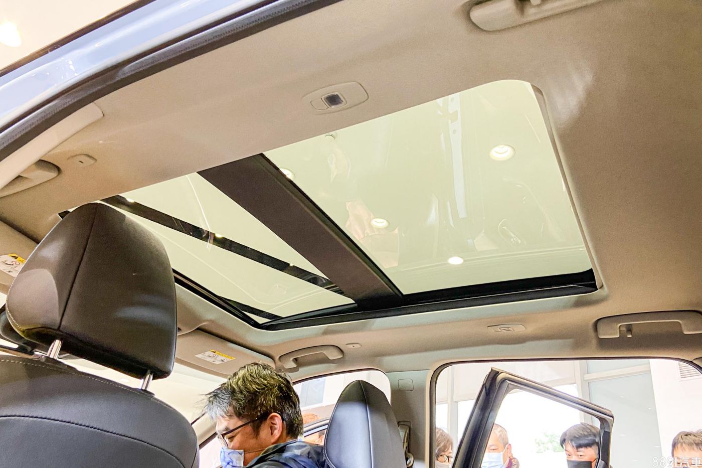 標配全景式電動天窗,開啟面積相當廣,一路涵蓋到後座,增添視野的開闊度。