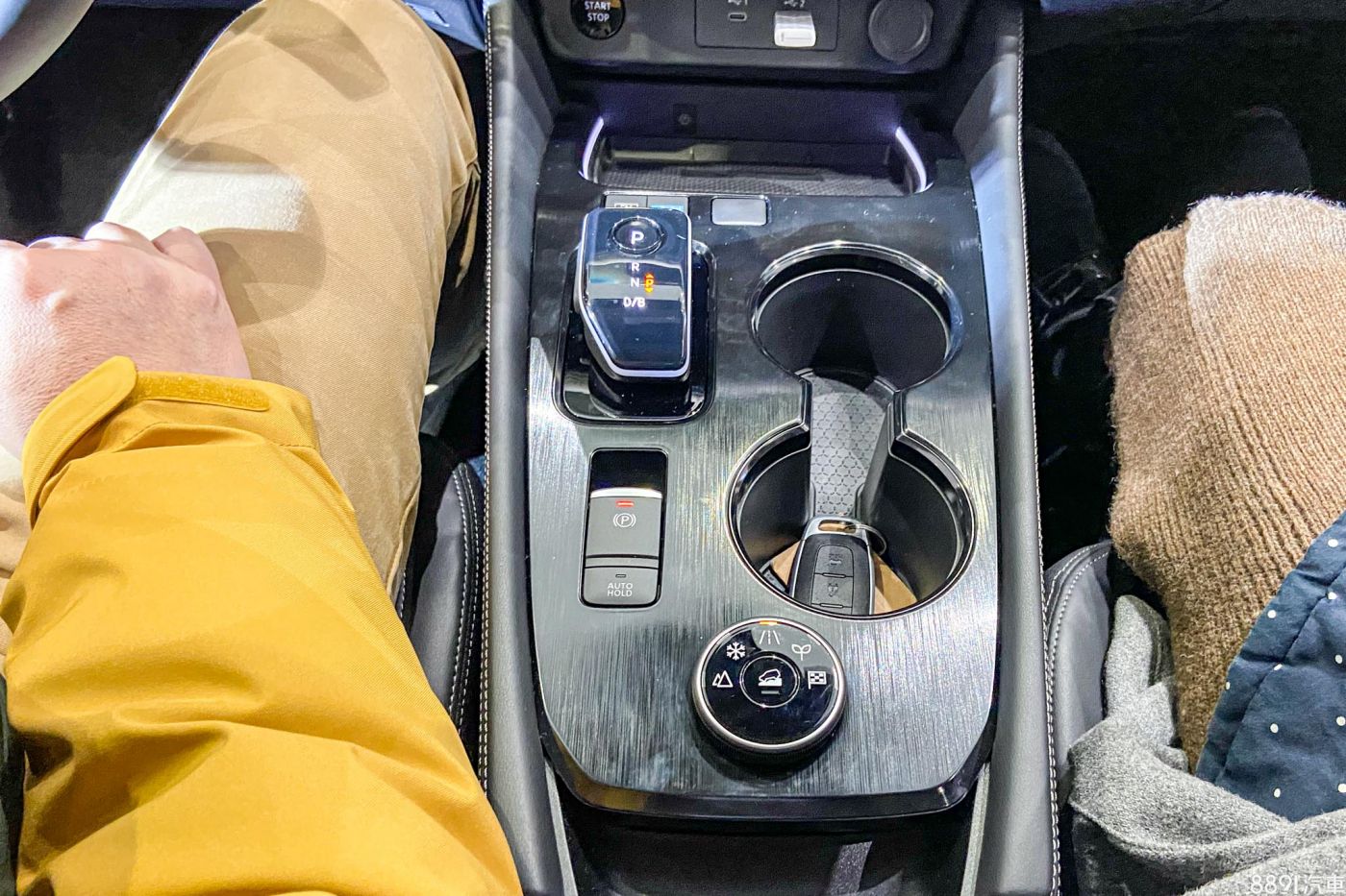 與汽油版的握桿式不同,e-Power車型採用類似「滑鼠」的線傳排檔,前方設有EV、e-Pedal單踏板模式的按鍵,後方則有電子手煞車+Auto Hold,以及駕駛模式的旋鈕,提供節能、一般、運動、雪地、越野等五種切換。