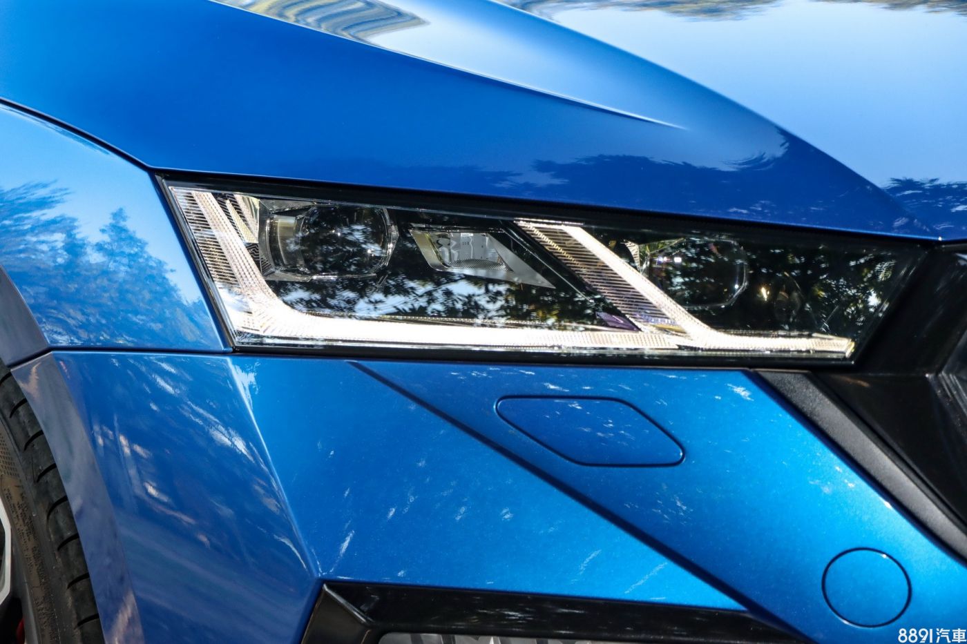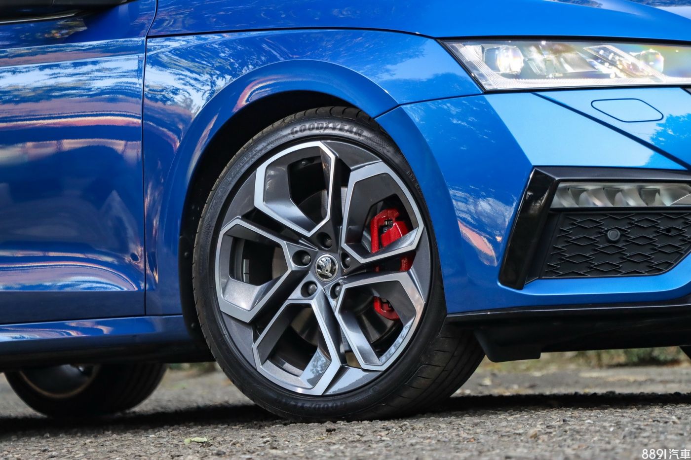 後保桿加諸紅色飾條妝點,加上擾流尾翼,以及雙出尾管,營造出符合性能身分的視覺效果,另車尾的Skoda字樣,也施以黑色塗裝。