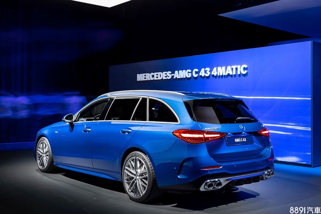 C 43 4Matic搭載的是導入48V輕油電和電子渦輪技術的2.0升四缸渦輪汽油引擎,最大輸出408hp/51kgm,48V系統的啟動馬達發電機則能額外提供14hp馬力。搭配的是9速手自排變速箱及四驅系統,房車和旅行車版本,0~100km/h分別能於4.6、4.7秒完成,極速250km/h。