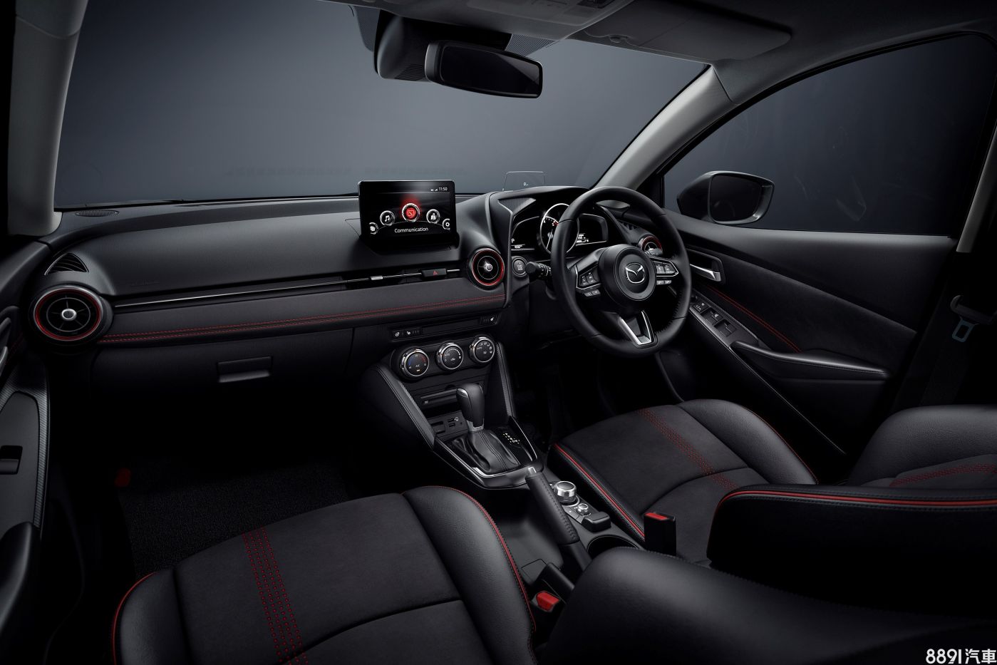 內裝部分延續運動化路線,除了皮布拼接的座椅外,也運用大量紅色縫線、飾條來提點視覺氛圍。