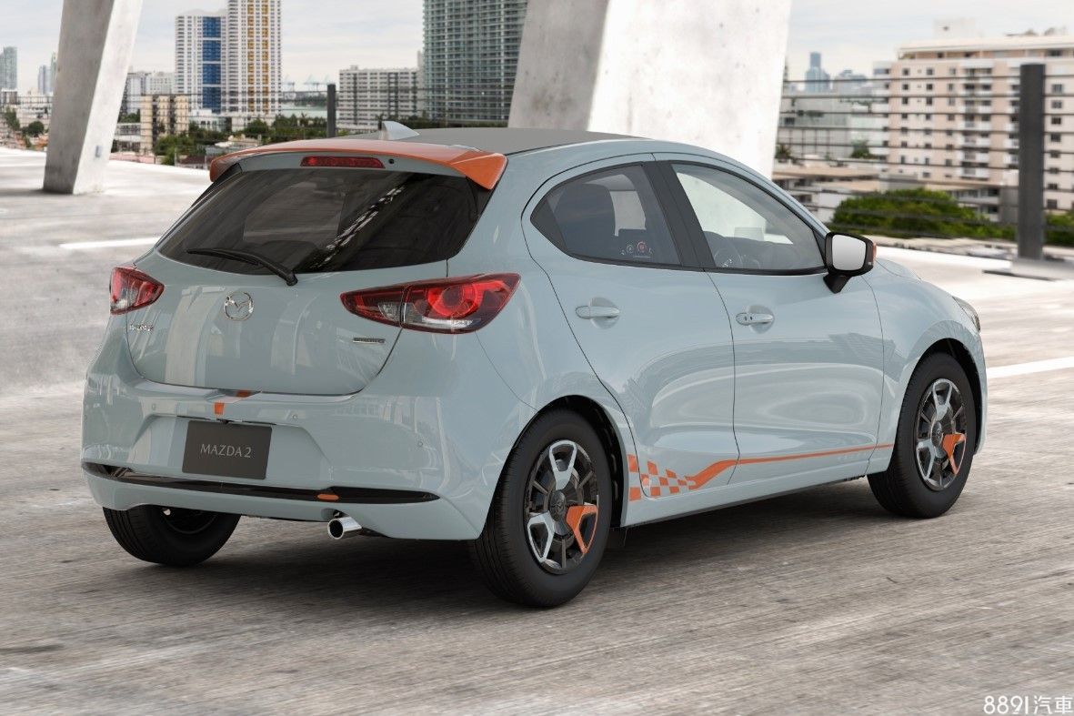 針對年輕客群喜歡享受眾人目光,日規Mazda2也新增「Rookie Drive」與「Clap Pop」兩款特仕車,前者如上圖試範,是以橘色調作為主軸,車門下緣還有個性化車貼,看起來十分高調。