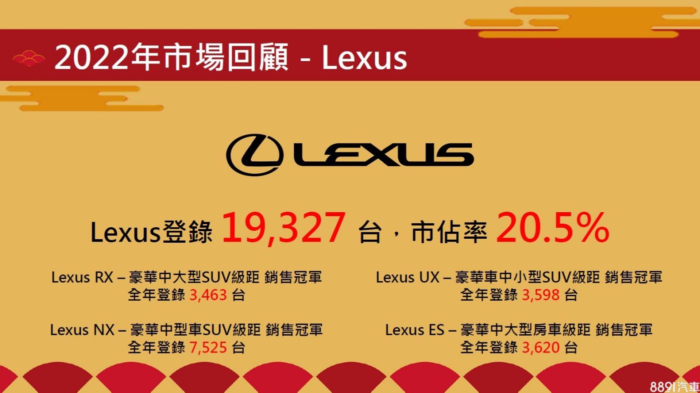 Lexus去年登錄了1.9萬輛,在豪華品牌市佔率稍稍下滑,陣中的「四大金剛」UX、NX、RX、ES都在各自所屬級距拿下銷售冠軍。