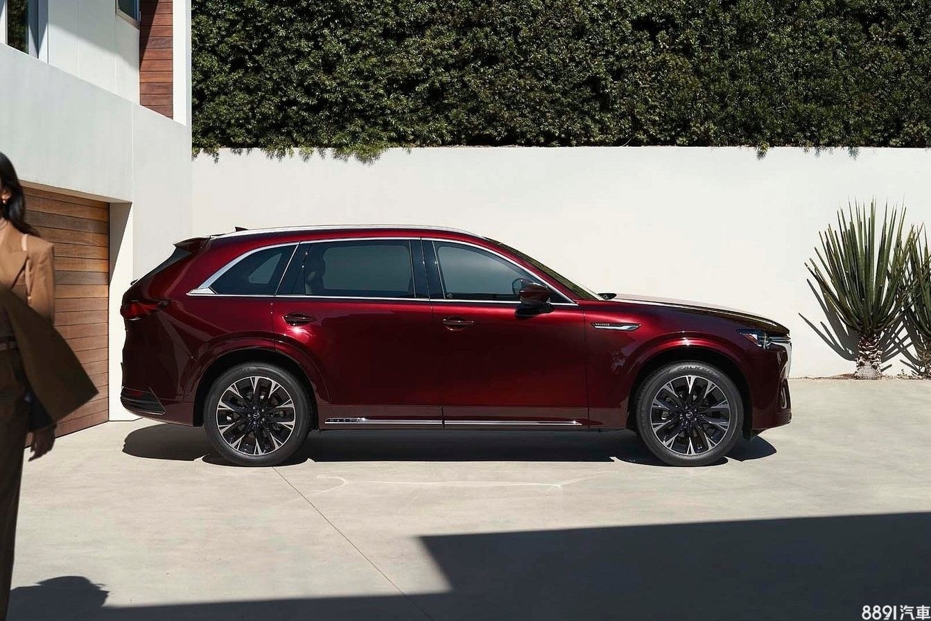 CX-90是Mazda針對美國市場推出、採用全新後驅平台開發的三排座旗艦休旅,外觀基於最新的「KODO魂動」與「減法美學」的設計理念,車身線條相當簡單純粹,車頭望去與已經發表的CX-60相當類似,皆是直瀑式的水箱護罩,搭配環繞式的大型鍍鉻飾條,梯形的下氣壩與保桿兩側的開口,為這輛大傢伙增添幾分動感。