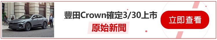 曾預告第一季在台上市的Toyota Crown,原廠本周終於鬆口國內上市規劃,宣布將於3/30開賣,並比照海外供應Crossover版本作為首波車型,預期屆時推出後將成為品牌在台旗艦車系。