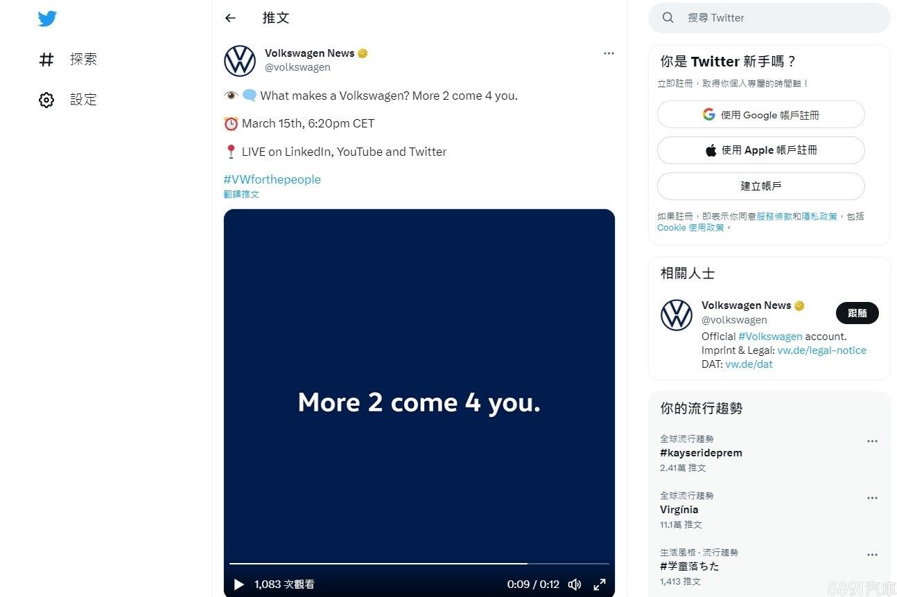 事實上,福斯官方Twitter已經有動作,近期一則貼文「What makes a Volkswagen? More 2 come 4 you」,搭配預告片中「從4倒數到2」其實就能嗅出端倪,沒意外就是在為新車ID.2鋪路,唯一可以肯定的是,在3/15的官方活動中將會有新車消息,據外媒表示會先以概念車的方式亮相!