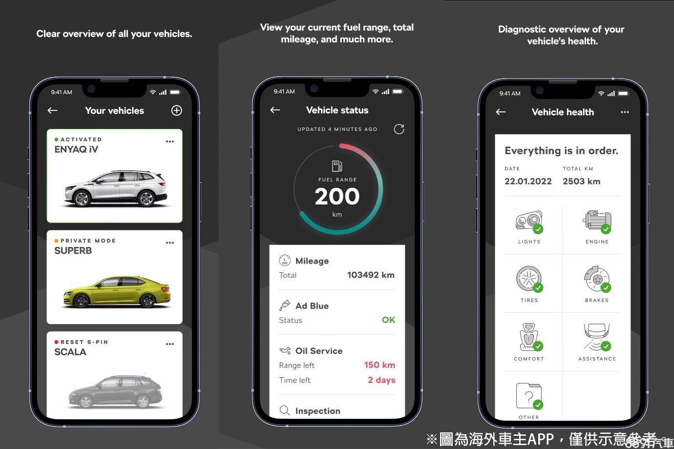 另一方面,比照目前已上架的「MyAudi」和「My Volkswagen」等車主專屬APP,Skoda和福斯商旅也計畫在今年分別推出「My Skoda」和「My eVanLife」兩款手機應用程式,提供各品牌車主查詢車輛資訊、經銷聯繫和預約保修等線上服務。