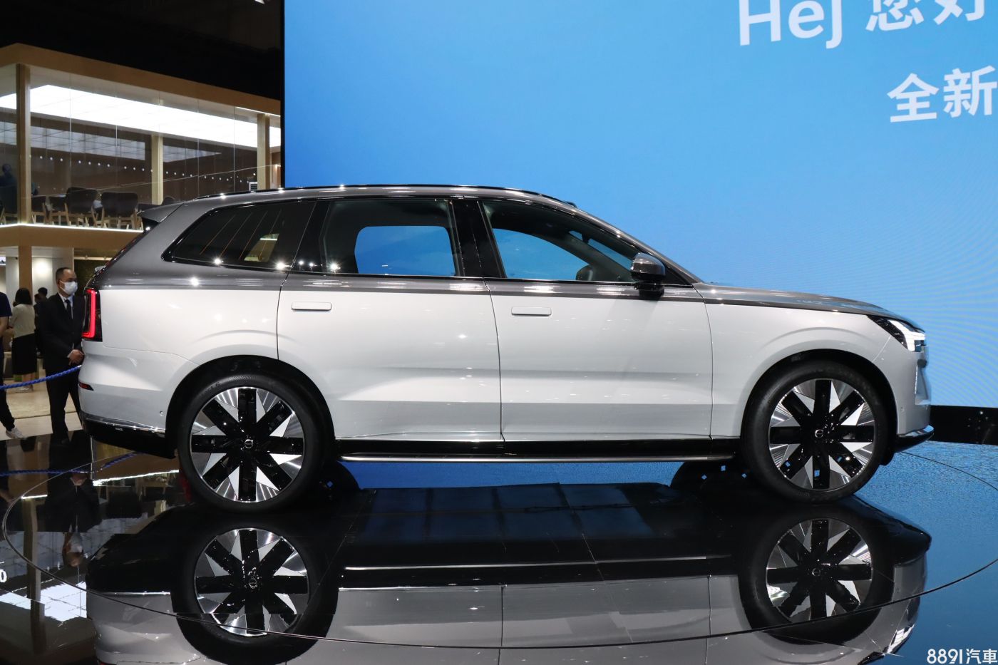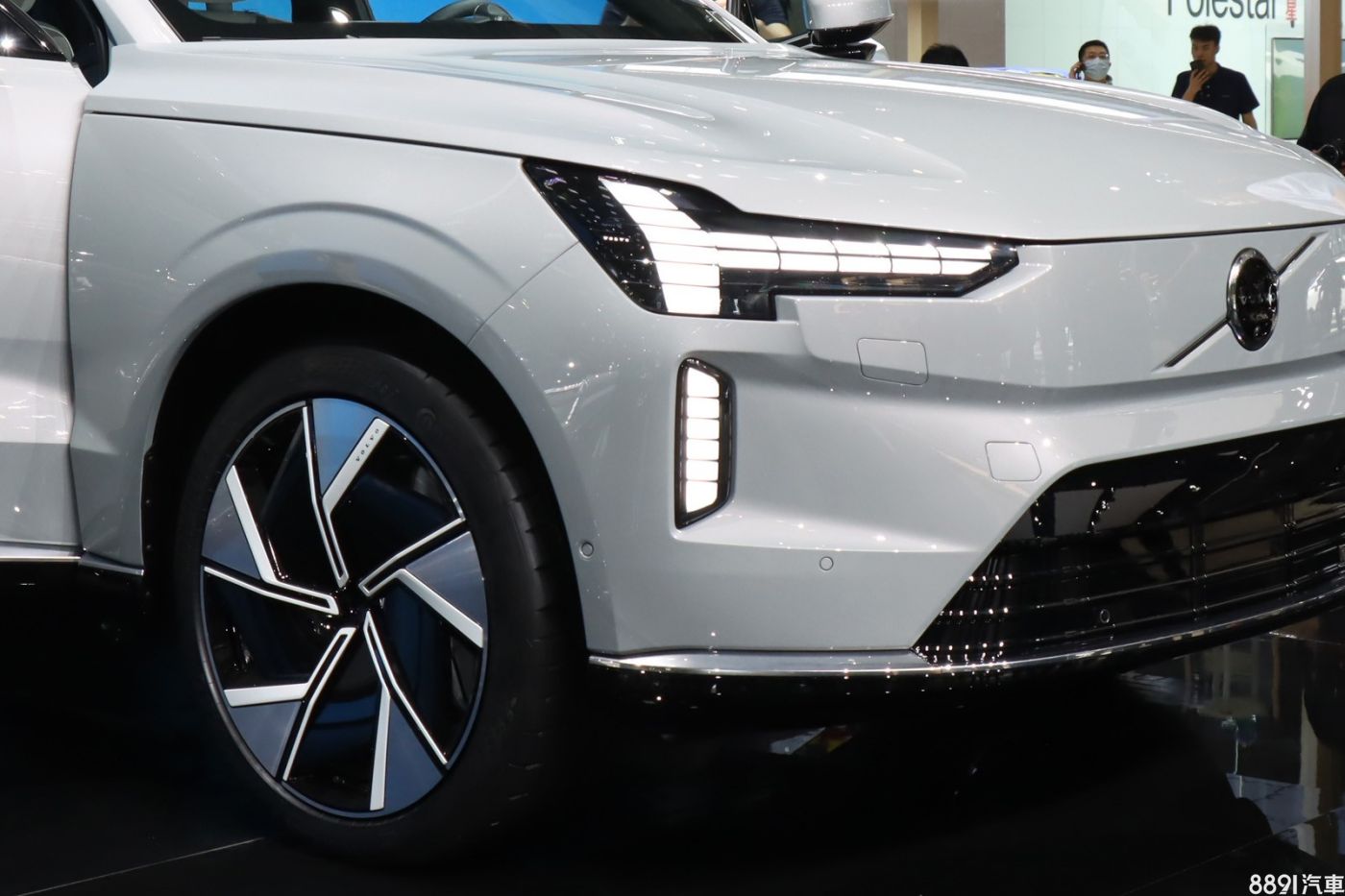 Volvo新世代純電休旅EX90,被視為是大改款XC90的繼任者,車格一樣維持大型休旅設定,外觀上擁有簡潔的保桿樣式,鈑線造型也盡可能的平面化,成功創造出不俗的風阻表現,另外展車也用上較為罕見的雙色車身塗裝,實際感受確實很有「旗艦感」。