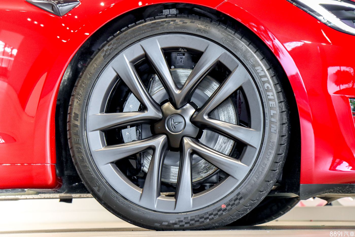 鋁圈亦隨改款換搭新造型,Model S標配19吋樣式,不過展示車另加價14.5萬選配21吋款,搭配前265/35R21、後295/30R21的的米其林PS4S跑胎。Model X則搭載20吋鋁圈,但提供22吋造型可加價升級。