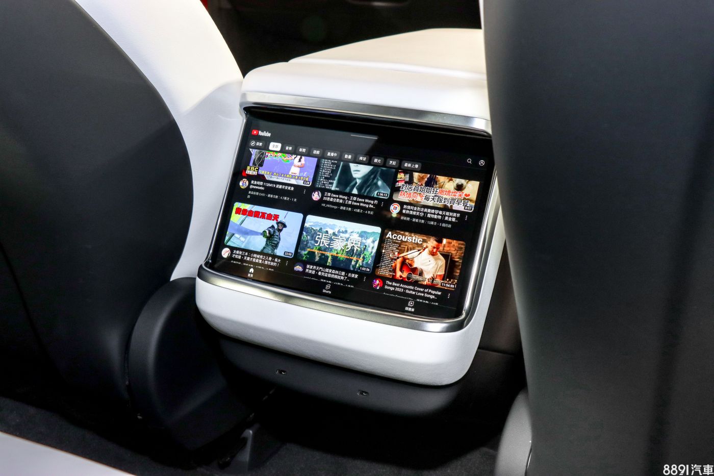 後排同樣也採隱藏式出風口,原廠並在空出來的中央扶手後方新增8吋觸控螢幕,除了提供遊戲和影音等娛樂服務,空調和後座加熱功能也都能由此進行設定。