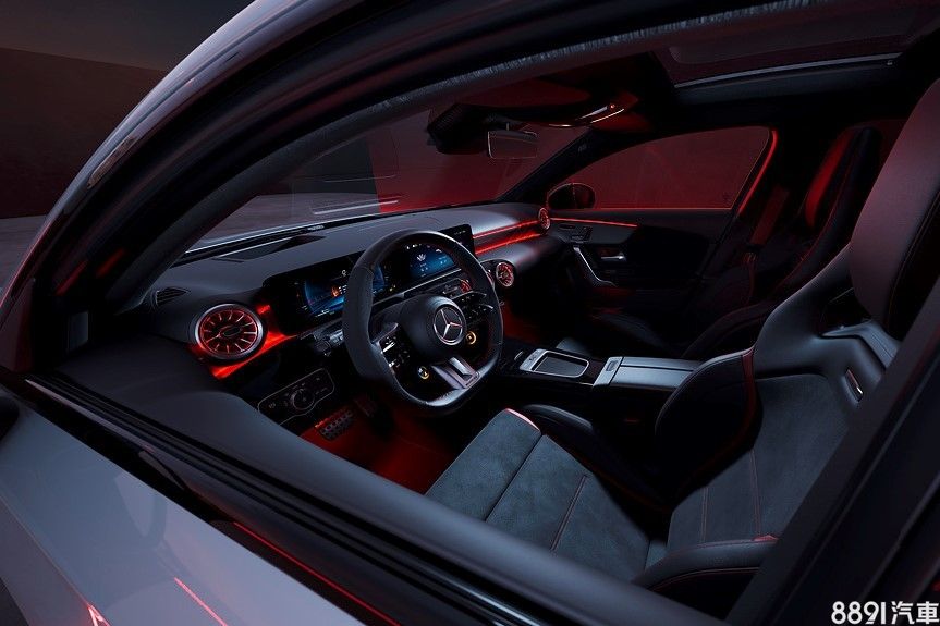 座艙則是在A 45 S的基礎上再配備高性能賽車座椅,並在內裝細節及頭枕繡上專屬橘色縫線,與外觀的競技風格做呼應。