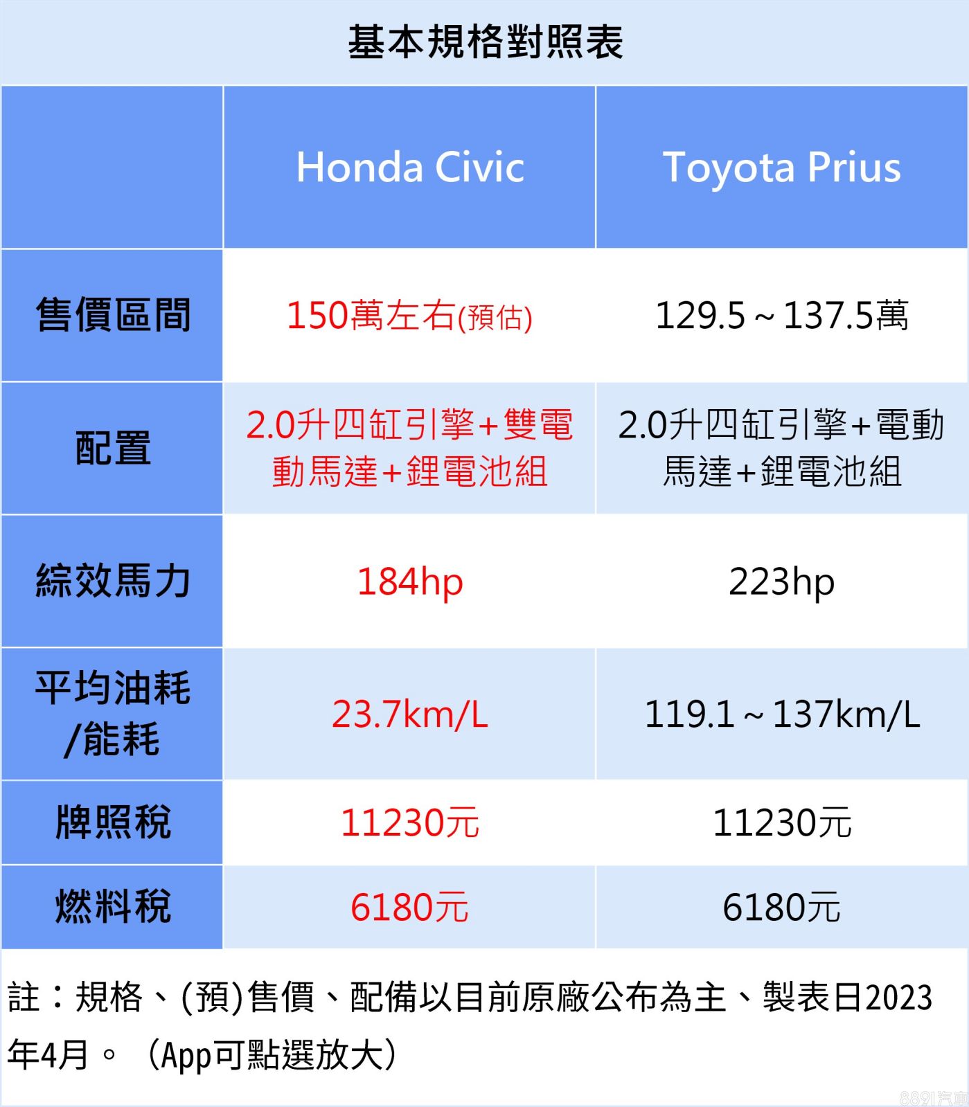 就基本規格來看,兩車稅金級距相當,但Prius的插電式油電混合動力在油耗方面占到不少便宜,據了解,Civic售價下修的機會可能不高,也因此Prius的價格優勢也確實難以忽視。