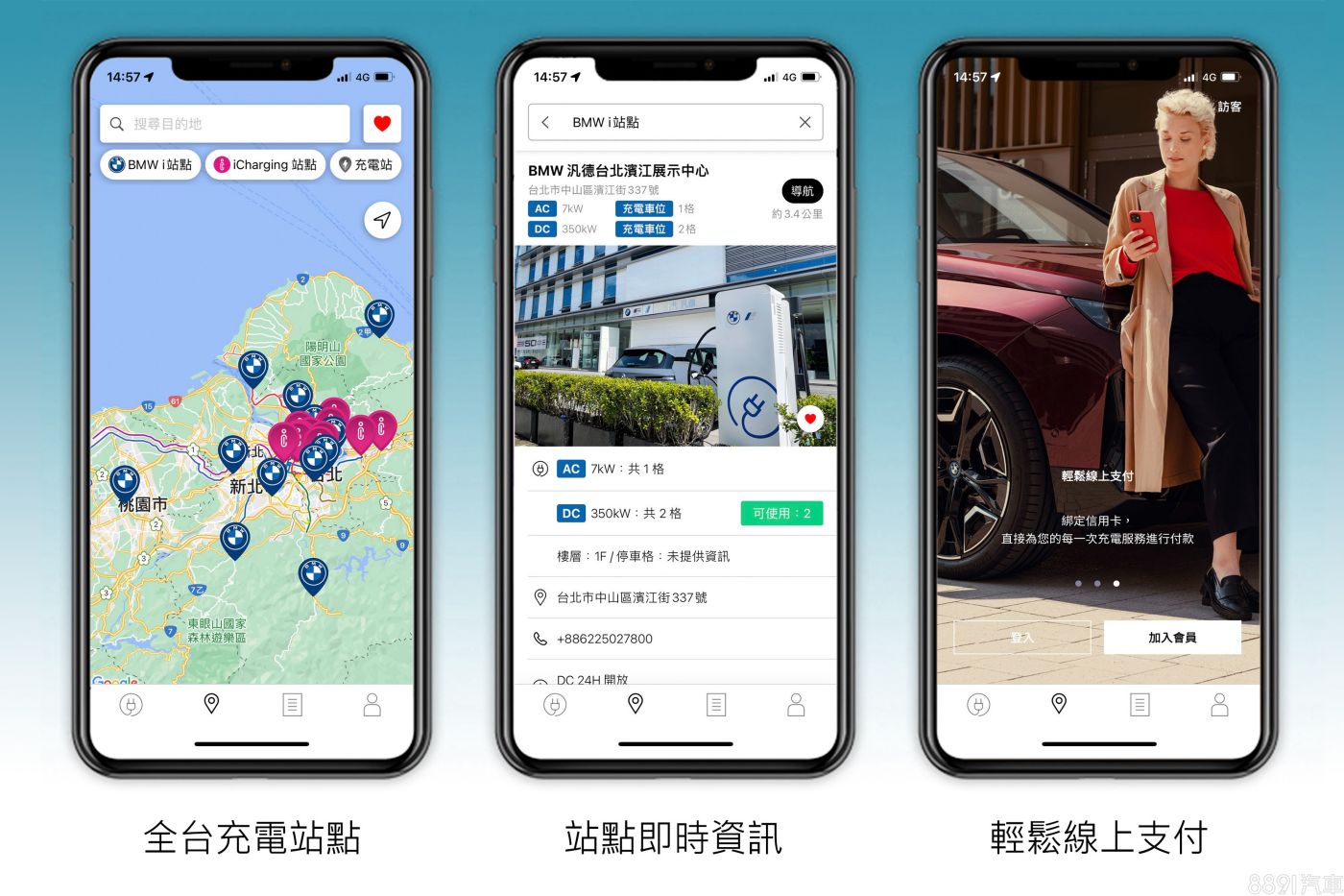 車主可透過「BMW充電App」,輕鬆搜尋鄰近的BMW或第三方充電服務站點,也跨平台整合中興電工iCharging,車主只需開啟App並掃描充電站點的QR Code,就能直接啟動BMW i高速充電站或iCharging站點充電服務;App亦提供及時查看愛車充電狀態、愛車充電紀錄、即時查詢可用的充電裝置數量等功能。