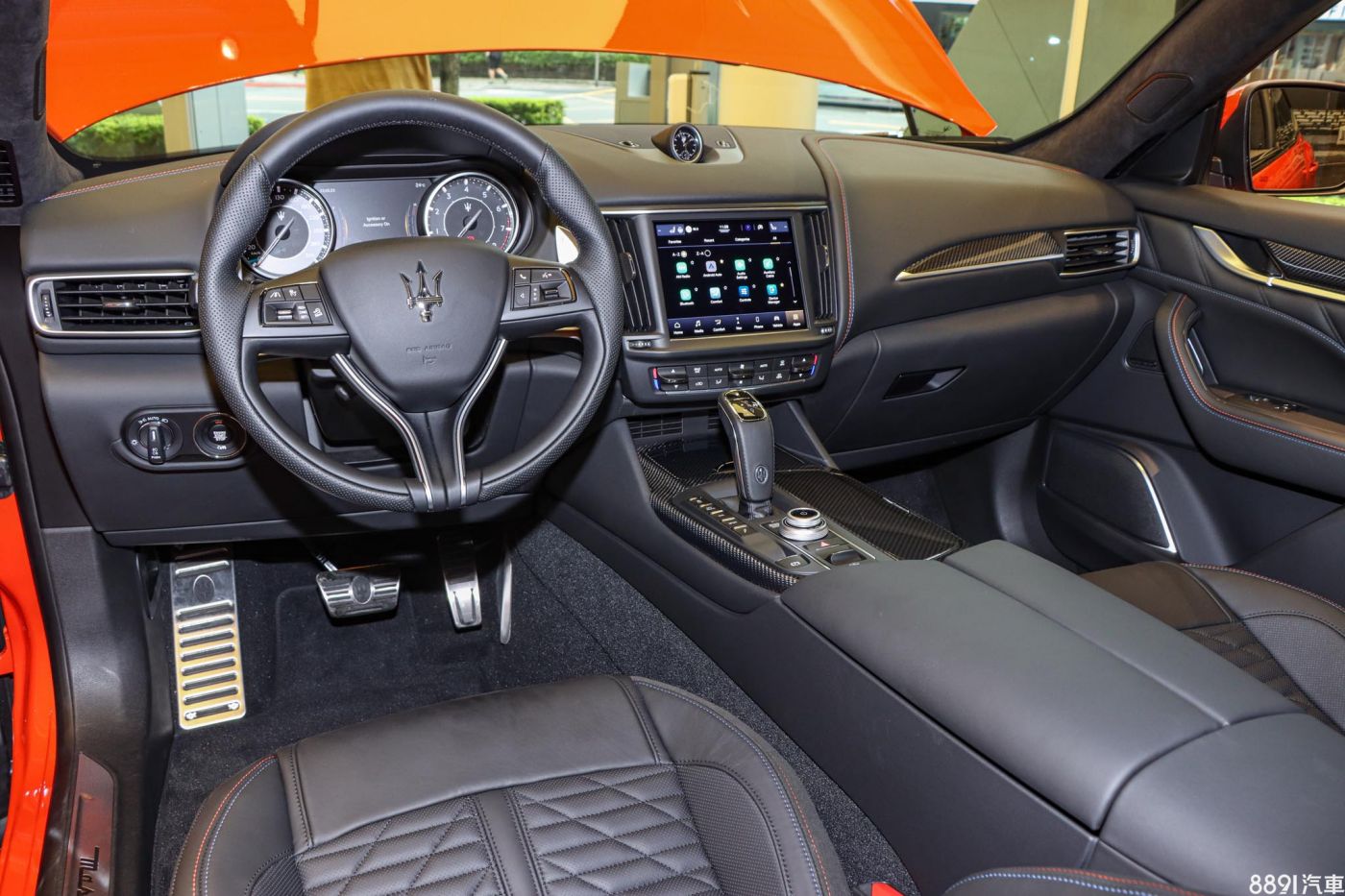 座艙沿用現行Levante的格局,採用8.4吋中央車載螢幕,支援Maserati MIA智能多媒體系統,配有原廠導航、Apple CarPlay/Android Auto連線、語音助理等功能,內裝採用Pieno Fiore天然皮革、Alcantra麂皮頂棚、亮面碳纖維飾板等妝點。