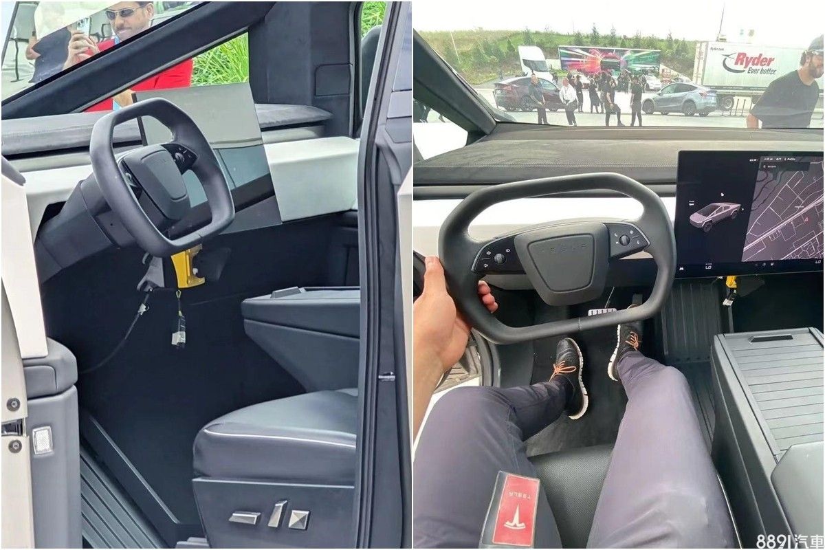 內裝方面似乎捨棄的原先狀似飛機操控桿的Yoke方向盤,改為傳統常見的圓弧型設計,推測應該就是比照Model S、Model X一樣,將Yoke方向盤列為選配,不過更令人好奇的是,這次Cybertruck流出照,並未見先前測試車有被拍到的獨立儀錶,究竟量產版會是什麼走向目前還未有定案!
