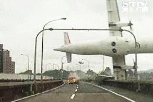 真的是「飛來橫禍」,2015年2月,復興航空GE235班機,因人為疏失墜毀基隆河,最終造成43人死亡的慘劇,而飛機失事前,左機翼擦撞了環東大道高架橋上一輛正在行駛的計程車,駕駛和乘客逃過一劫,而被行車紀錄器拍下的瞬間,也成為了代表性的畫面(圖取自東森新聞)。
