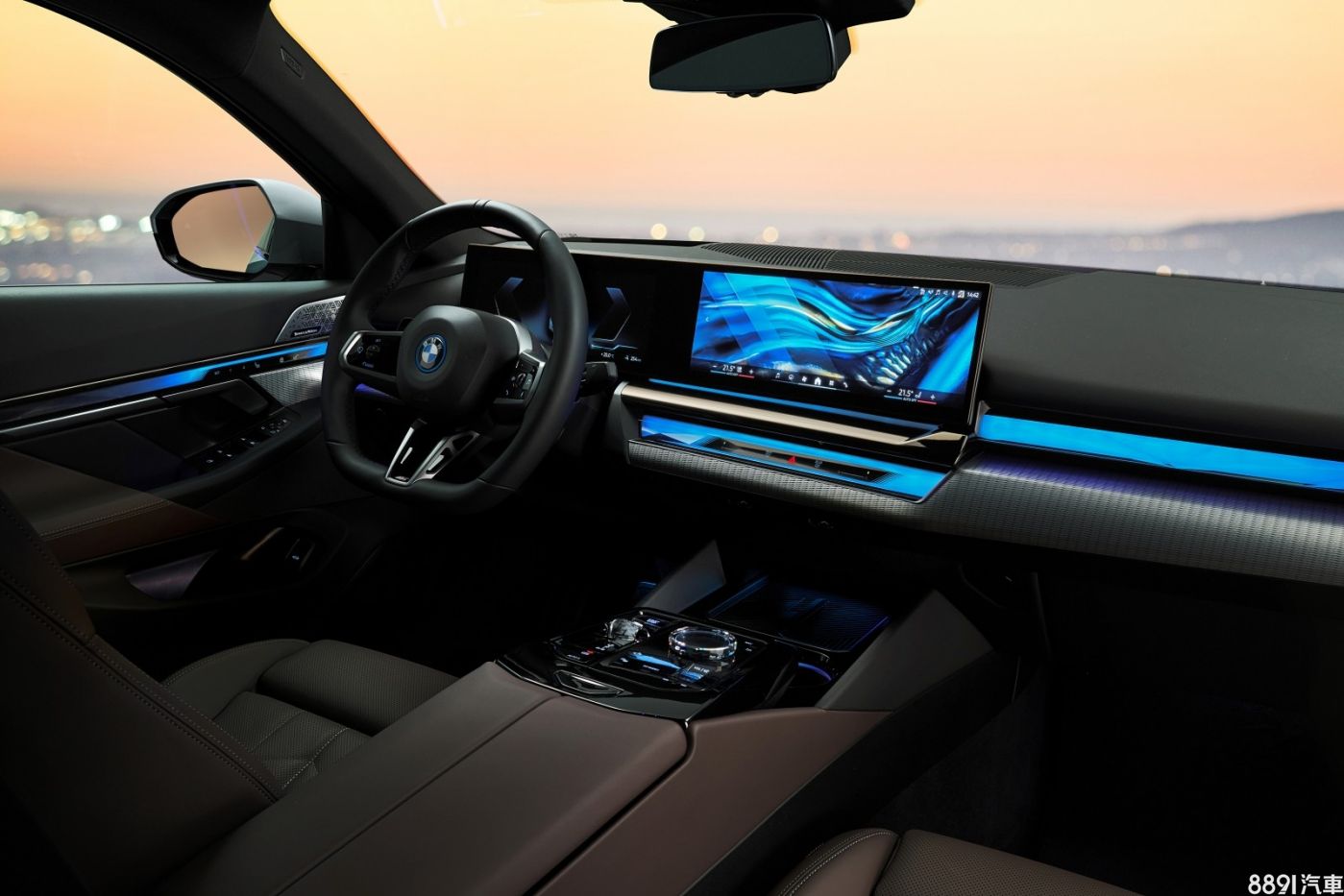車室如同「大哥」7 Series,採用自iX起就有的極簡鋪陳,搭載12.3吋數位儀錶與14.9吋中控螢幕,形成相連的懸浮曲面螢幕,並使用最新的iDrive 8.5系統,前排空調出風口則採環艙設計、加入水晶元素與氛圍燈的BMW環繞光幕整合。