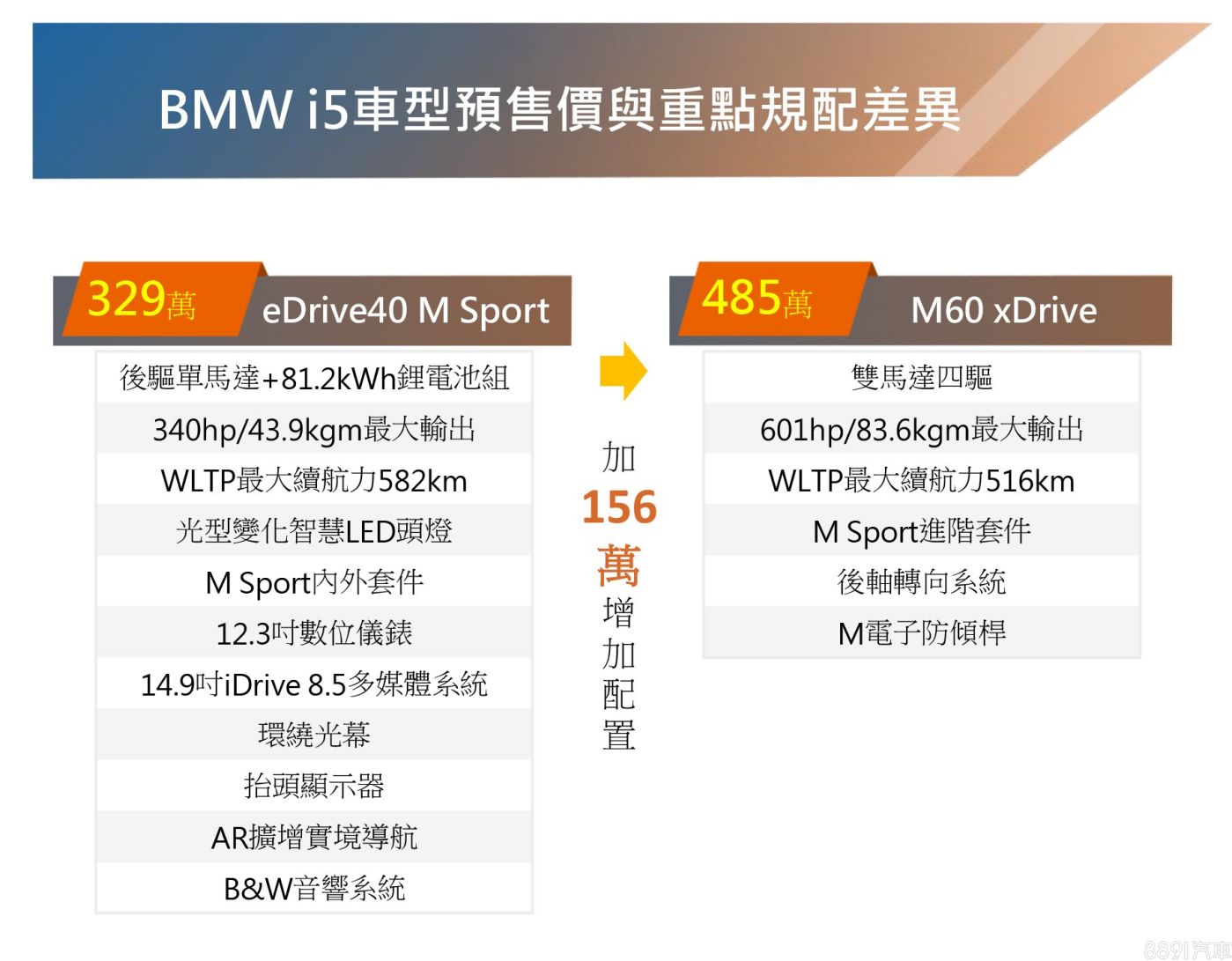 BMW總代理汎德於今日(6/8)宣布全新i5正式展開預售,首波將導入eDrive40 M Sport與M60 xDrive兩款車型,預售價分別為329萬與485萬,目前已可在官網中付訂10萬取得預購資格,正式上市時間預計落在年底,而燃油版本5系列雖然尚未開放預購,不過導入時間也預計在年底,有機會同時登場。