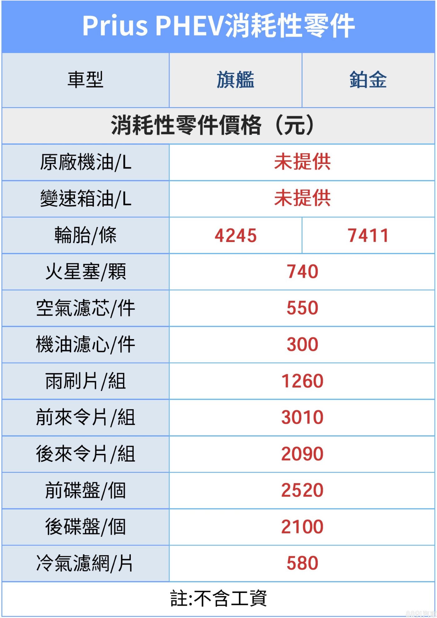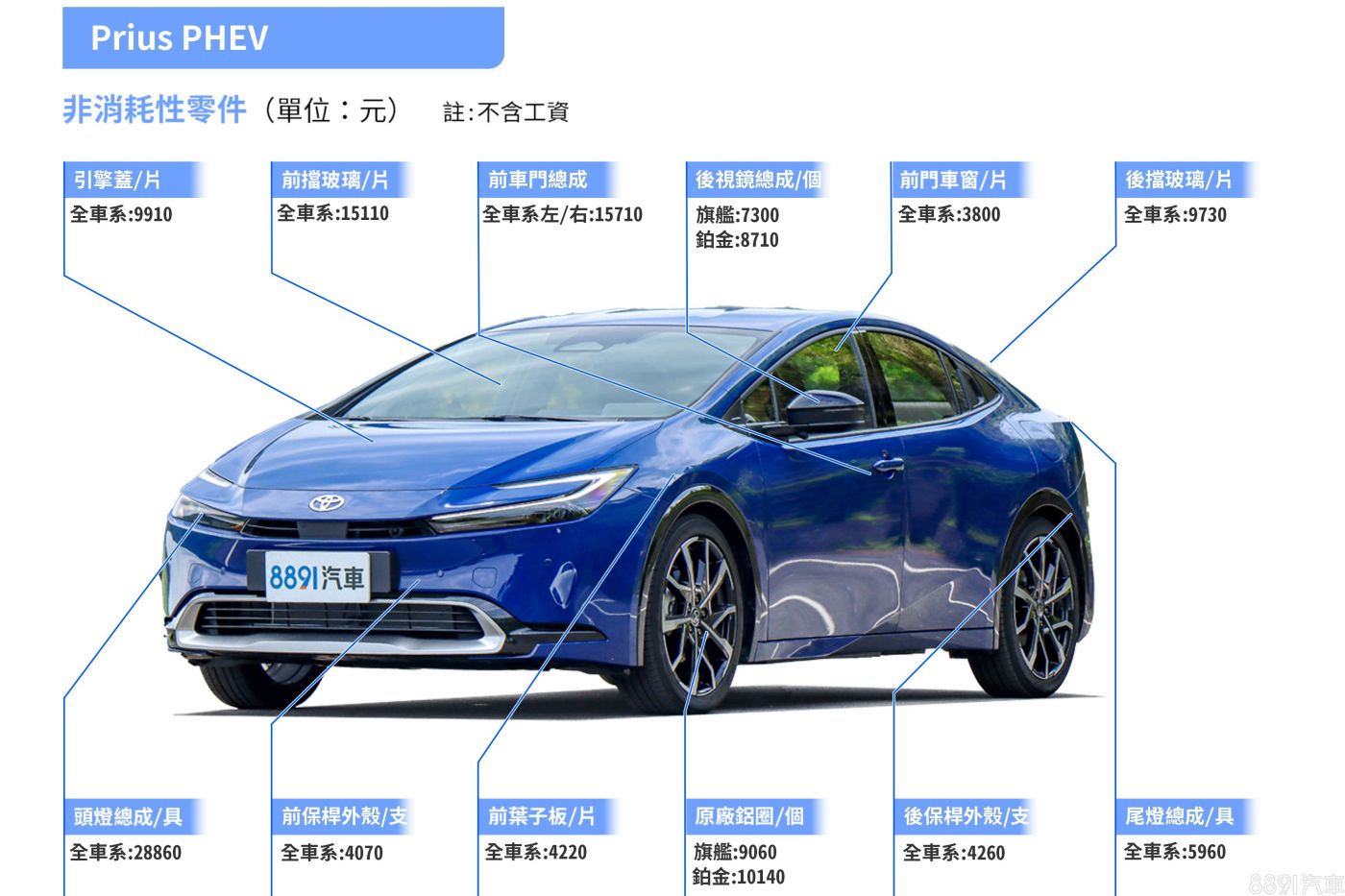 Prius PHEV的兩個版本價格分別是旗艦(129.5萬元)、柏金(137.5萬元),在定保價格上完全相同,大致落在3000~5000元的範圍,負擔和其他Toyota國產車相比其實沒有差太多。