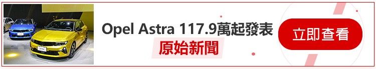 Opel Astra本周正式在台發表,提供Elegance都會版、GS潮流版、GS Premium旗艦版共三車型,售價分別為117.9、123.9和128.9萬元,除頂規版本,本月入主可免費升級手機無線充電裝置等配備。