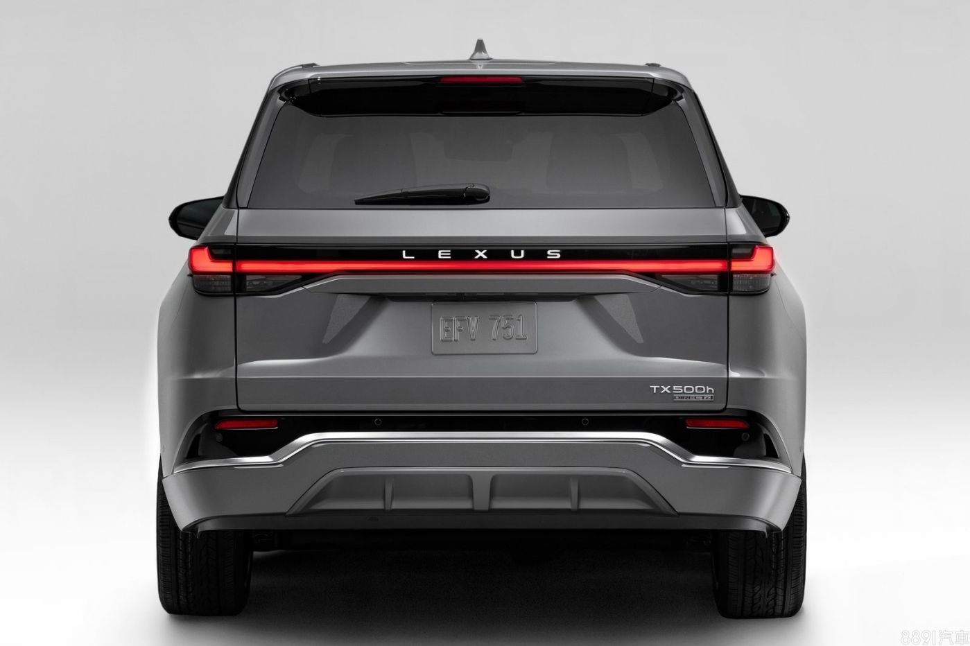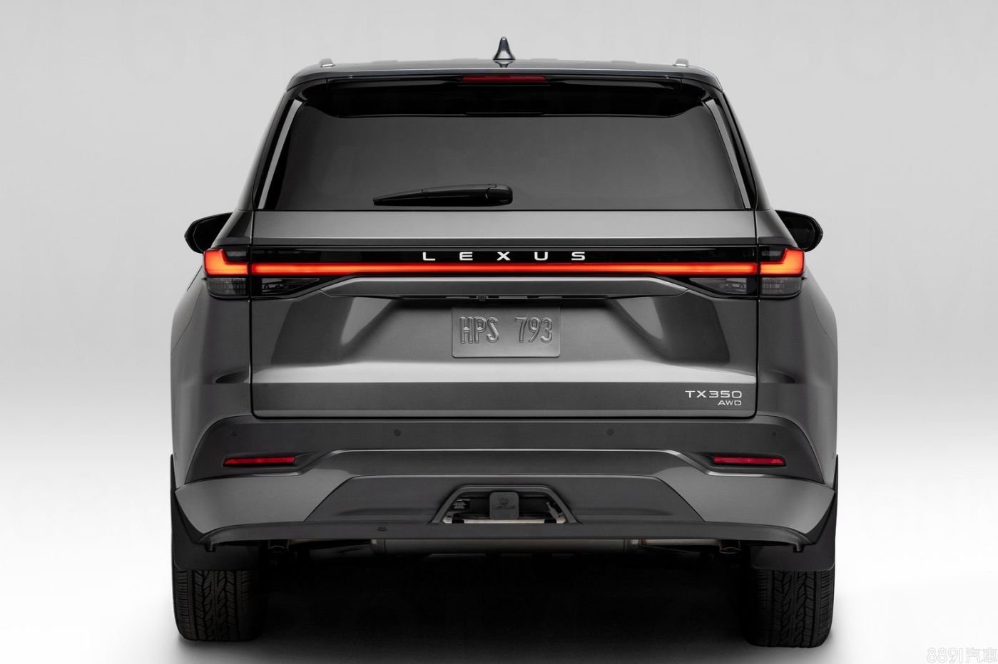 TX是比國人熟知的RX定位更高的三排休旅,車長破5米(5159x1989x1781mm),以GA-K平台打造,可視為Toyota Grand Highlander的豪華版。新車擁有俐落的鈑線、車身趨於方正,沿襲諸多新世代Lexus的特徵,收斂的水箱罩搭配造型複雜的梯形氣壩,頭燈組也相當銳利。