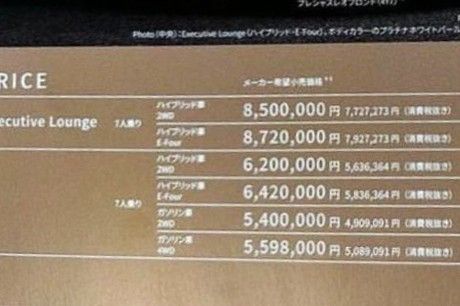 根據車型命名,日規新Alphard預計供應2.5升汽油和2.5升Hybrid兩種規格,完整規格資訊仍尚待公布,不過Executive Lounge頂級車型在當地則只有油電版本可選。