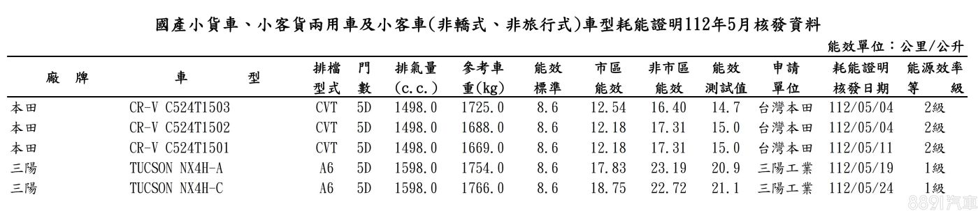 雖然官方尚未公布確切規格,不過自安全審驗、能源局等送測資料可見,新款CR-V首波維持1.5升四缸渦輪動力搭配CVT變速系統,輸出預計與現款的193hp/24.8kgm差不多,另外會依據配備區分3款車型,平均油耗落在14.7~15.0km/L。