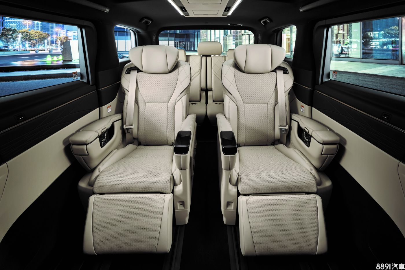 Alphard統一提供「2+2+3」的七人座設定,第二排為獨立Ottoman座椅,具備電動調整、腿托、通風/加熱等功能,另搭配一具吸頂式14吋螢幕,作為後座影音娛樂之用途