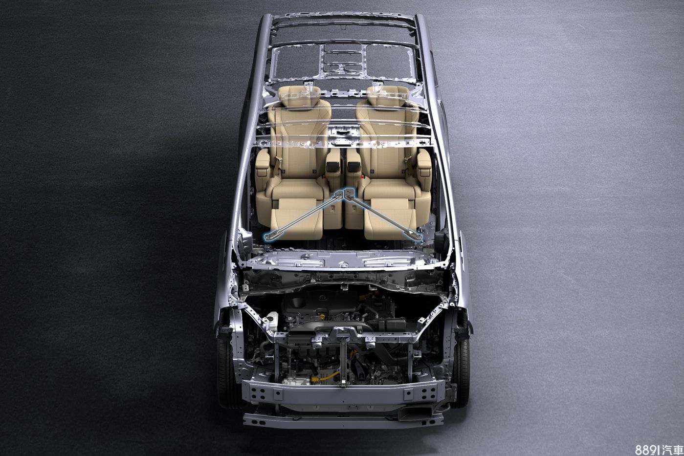 大改款Alphard換上TNGA-K平台打造,車身剛性較舊款提升約50%,原廠稱車輛轉向穩定性與乘坐舒適性有提升,國內引進動力為2.5升NA引擎為架構的Hybrid系統,搭配E-CVT無段變速與E-Four電子式四驅系統,油電最大綜效輸出250hp,能源局公布平均油耗為15.5km/L。