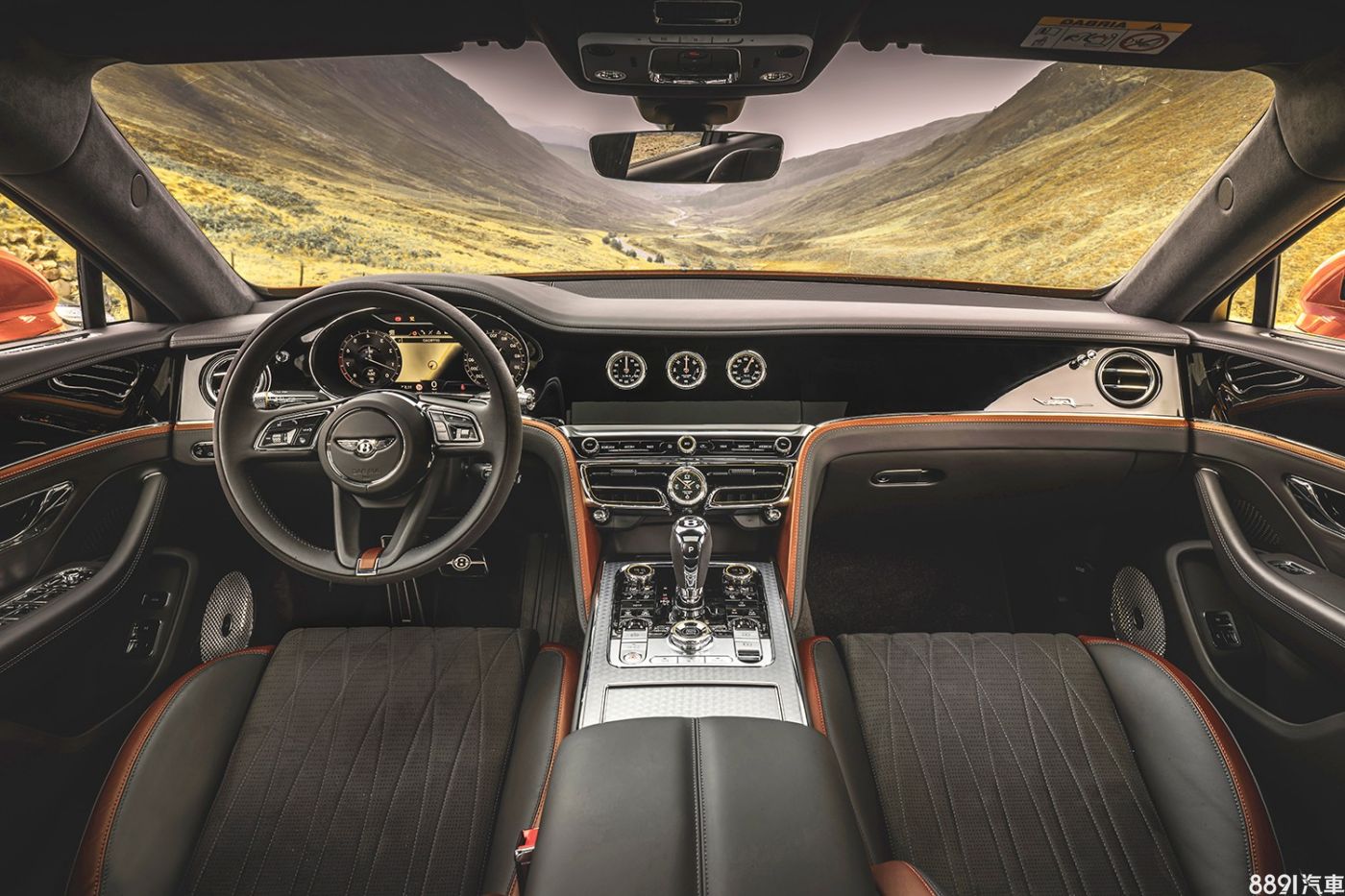 車輛配置,Flying Spur Speed提供15款Dinamica類麂皮搭配頂級真皮的內裝式樣可選,並標配前、後座舒適套件,包含加熱與通風、多款按摩模式和座椅記憶,以及高達24向前座調整、14向後座調整設定等功能。