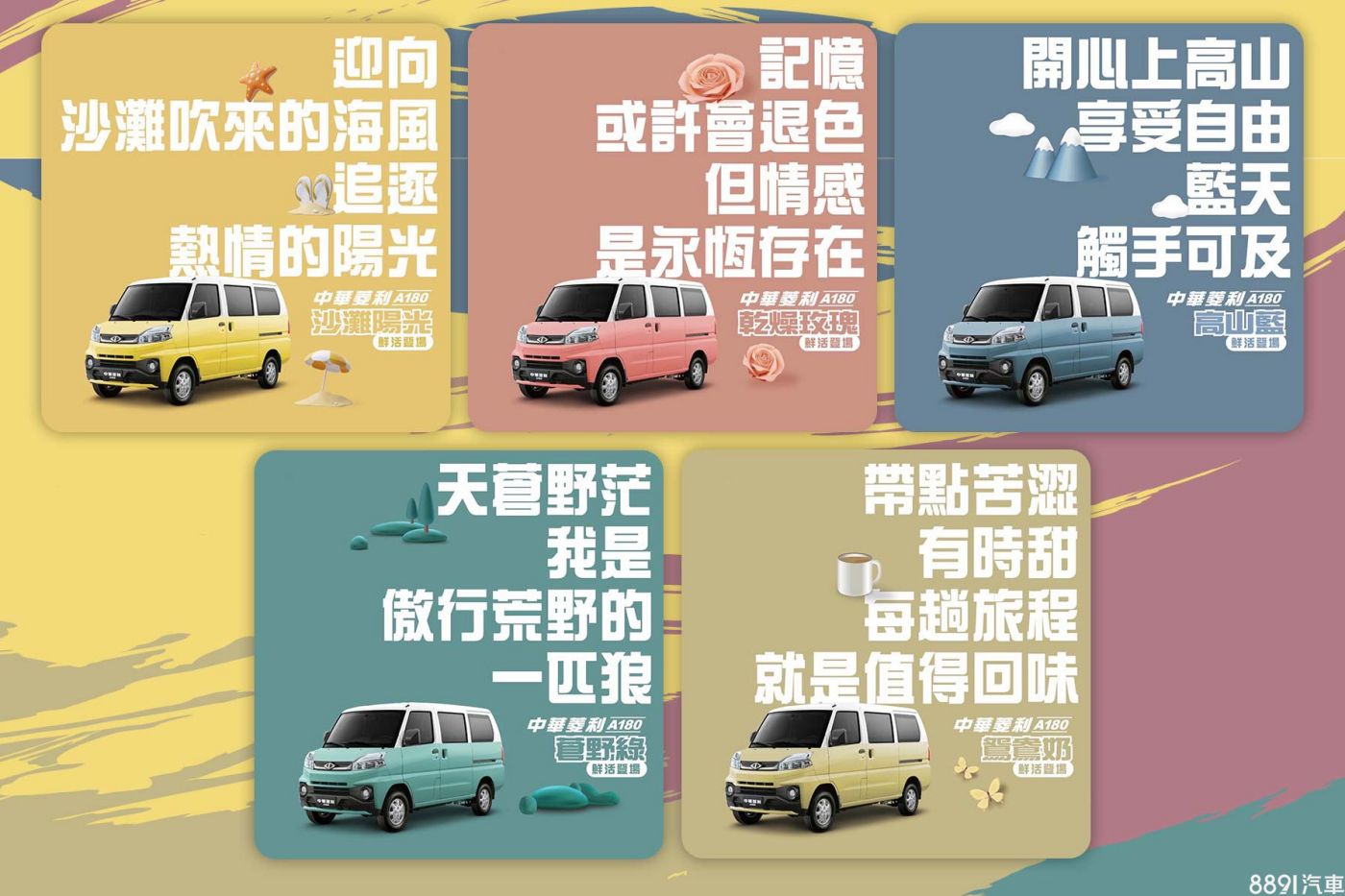 一舉帶來陽光黃、蒼野綠、高山藍、玫瑰粉和奶茶色等五款新色彩,皆強制搭配白色底色,以呈現雙色塗裝的視覺感,改色範圍僅限外觀鈑件,且僅開放「Veryca廂車版」(即A180車型)另行選搭。
