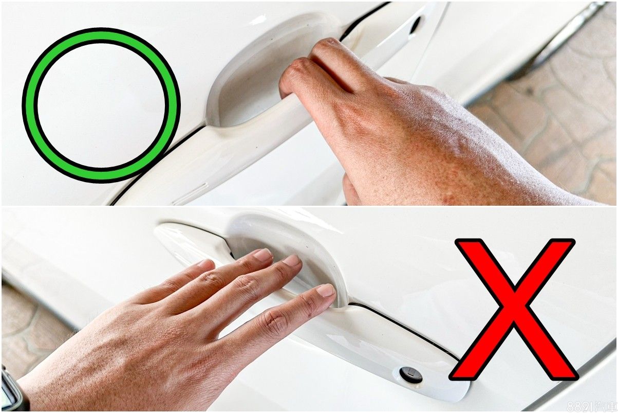 車門每天開開關關,如果在門把內側貼膜,難免會出現指甲刮痕,尤其淺車色又更明顯,可以試試看改個習慣,用兩根手指拉門把,比較能避免這情況。