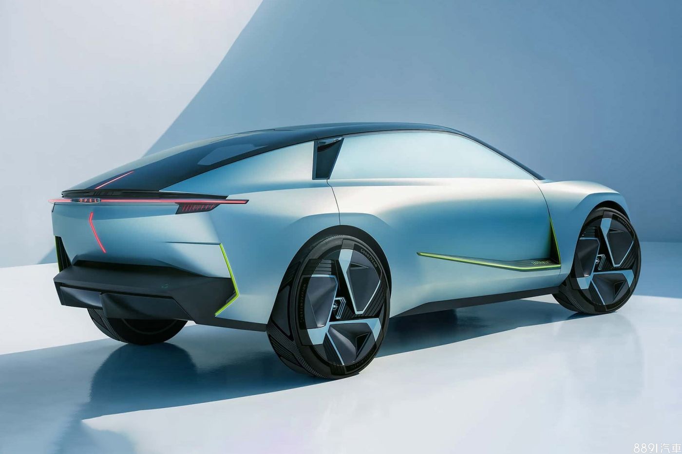 A柱以後車頂明顯下收,創造出動感的斜背造型,尾燈也呼應車頭,採十字型燈條包裹著廠徽的設計,並加入3D立體元素,輪圈樣式則融合許多不規則多邊形,同時選用霧面、亮面及網狀等多種材質來呈現,設計感十足。